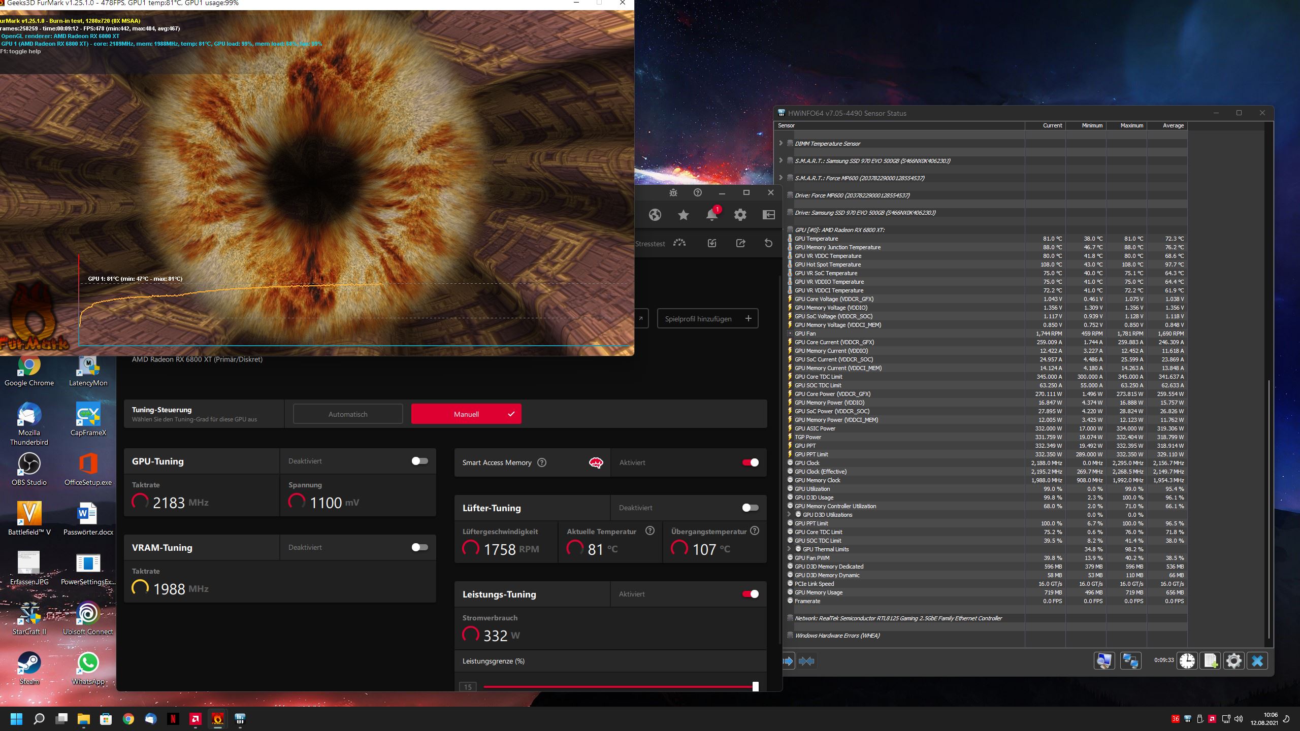 wir sehen 81grad Celsius und 107grad Hotspot temperatur.. also ein Hotspot Delta von 26 grad Celsius