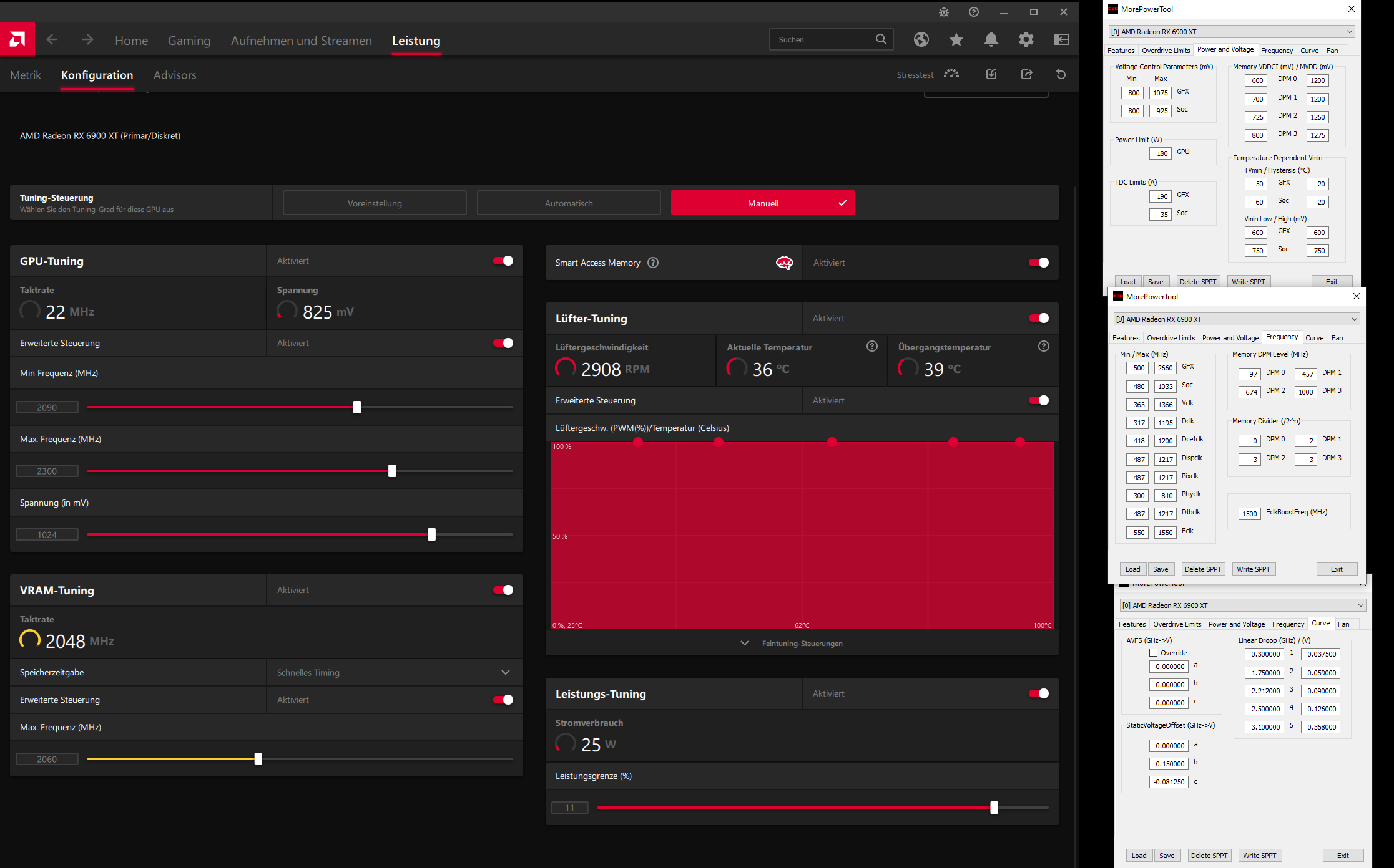 Wenn Du die 968mV bei maxGFX lässt könntest Du dann mal nur im Wattman versuchen etwas weniger zu nehmen, ggf. mit Takt+V dort rumspielen.