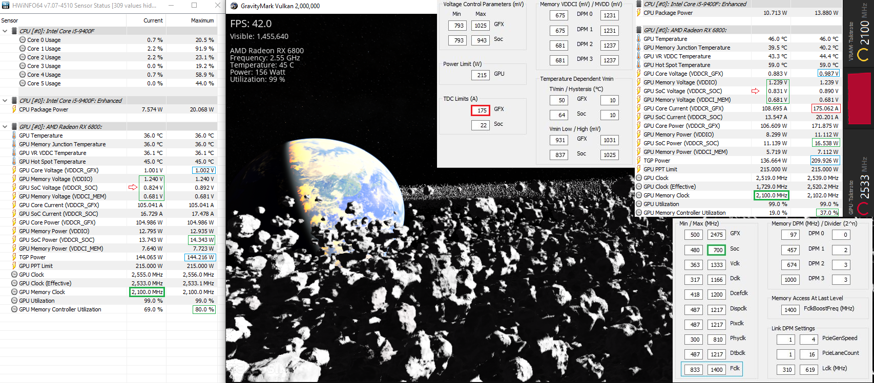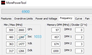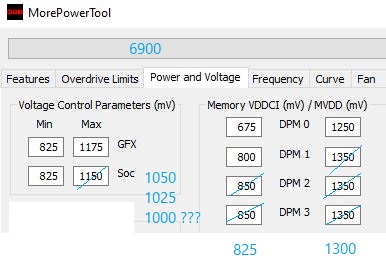 Kappe ich stattdessen mit dem MPT die Spannung auf max. 1100 mV und mache dann im Wattman den Offset, gehen 1030 mV, also -70.