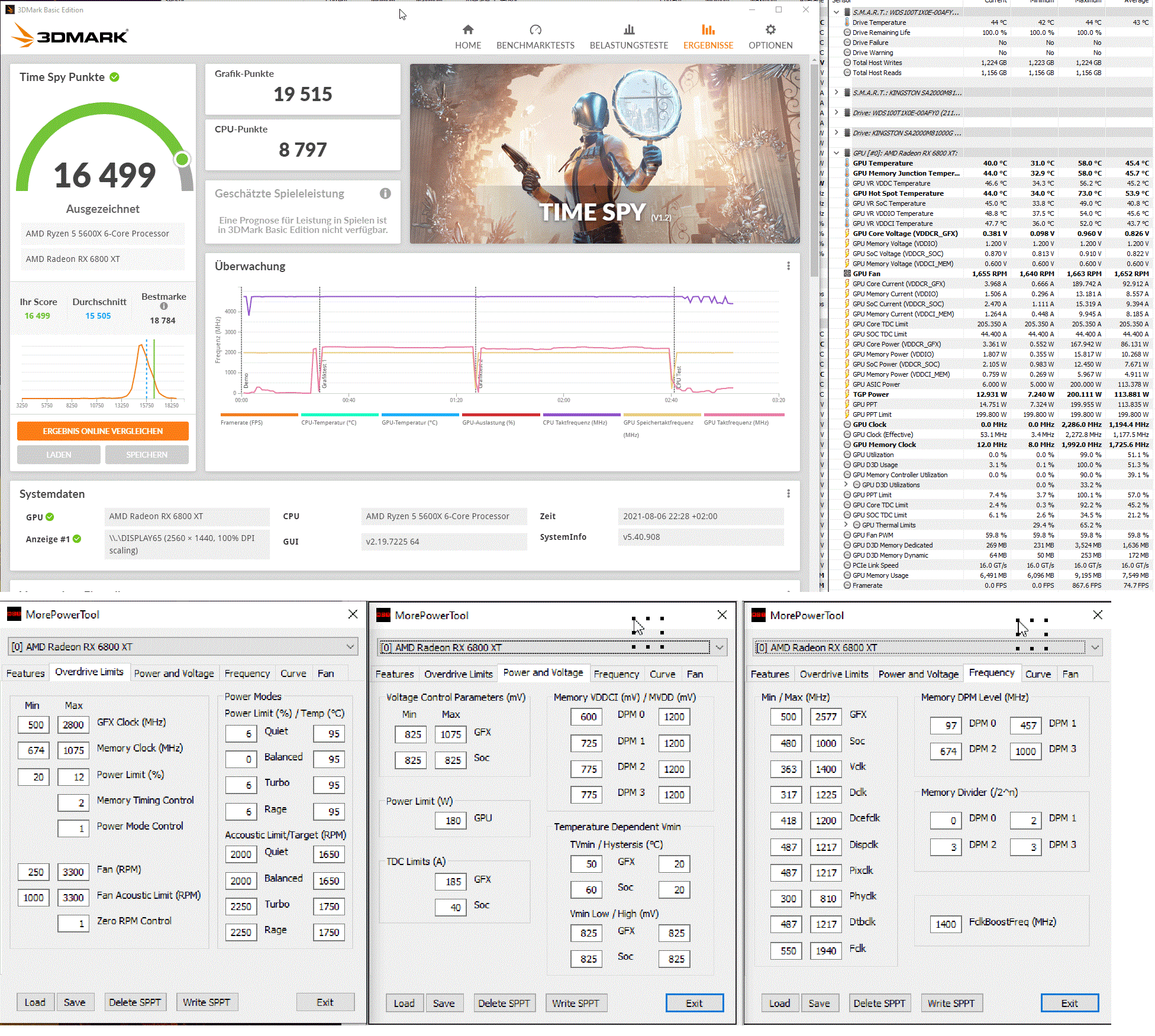 EDIT: Man sieht das ganz gut an meinem Timespy-Ergebnis, max Takt lag bei 2.569 Mhz - das ist nicht sonderlich hoch, dafür lag aber der durchschnittliche Takt knapp unter 2.500 Mhz - also lieber konstant einen höheren Durchschnittstakt als punktuell einen höheren Peak/Maxtakt.