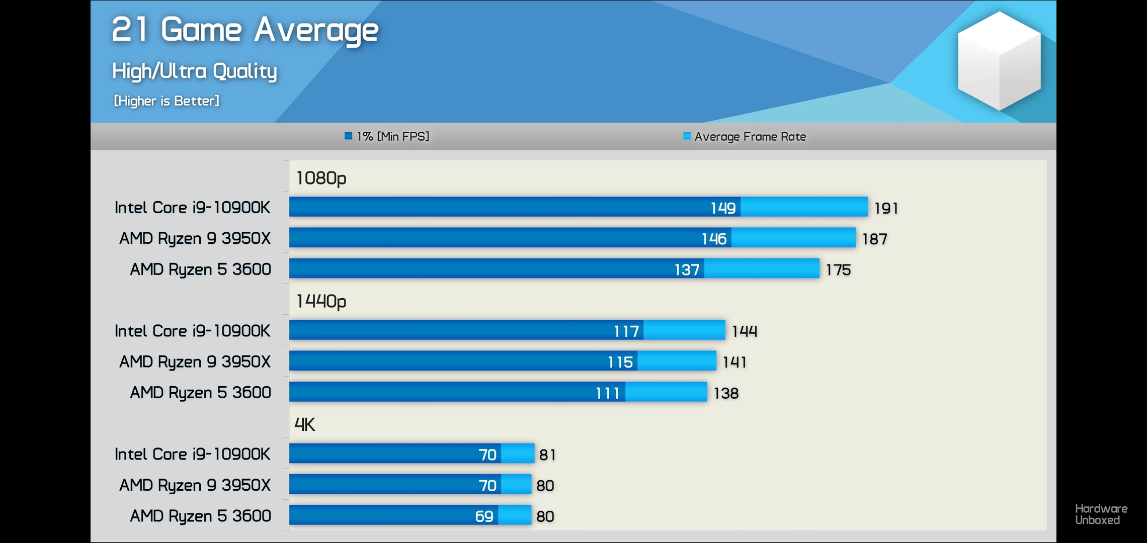 siehst ja im Video den Unterschied von deinem R5 3600 zum i9 10900K unter WQHD und was da schon mit einer 6800 non XT an FPS bei einigen Titeln an Diskrepanz zusehen ist