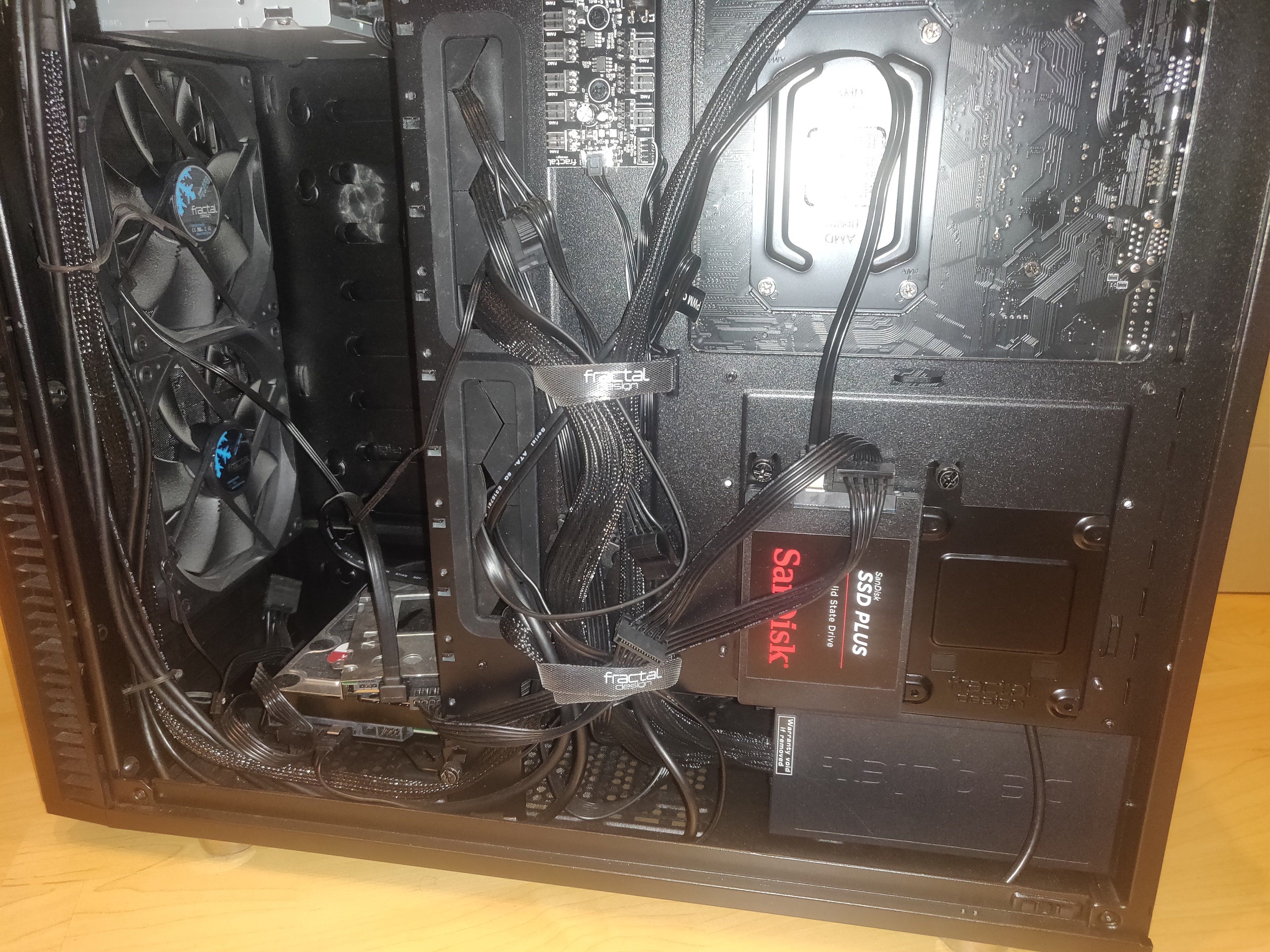 Mein Fractal hat wie abgebildet den originalen Lüfter hinten oben und zwei in der Front obere Hälfte, alle 140mm.