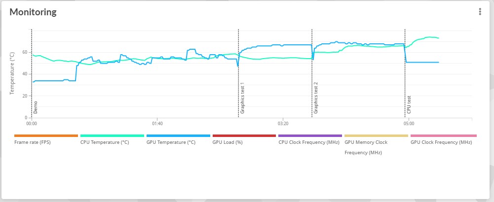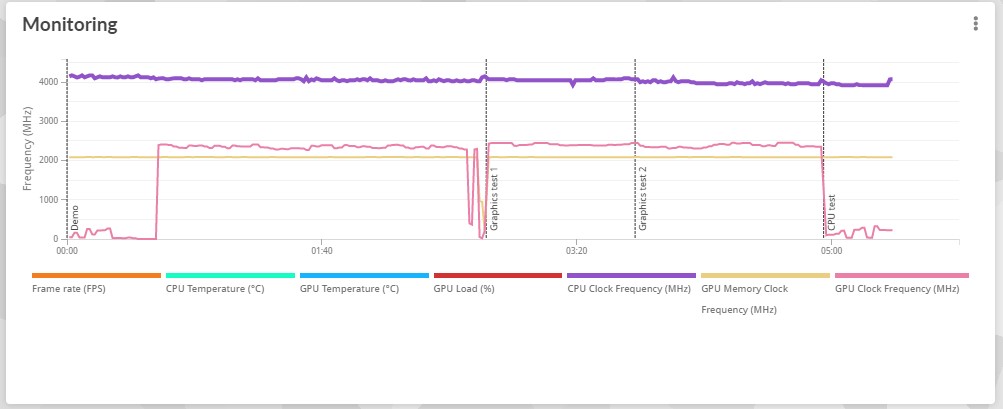Ab diesem Punkt konnten wir dann ausschliessen das die Karte ins Powerlimit läuft und ich ging davon aus das ein CPU Limit vorliegen muss,weil bei allen Runs der Karte im Bench(graphictest 1+2) manchmal die GPU-load auf 80% droppte.