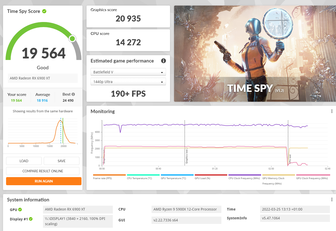 Edit: So mal gleiche Einstellungen bei der GPU wie beim 12900k diesmal mit 5900x.So ganz reicht es nicht,scheint einen kleinen (vernachlässigbaren) Einfluss zu haben selbst wenn wir einen kleinen Puffer von 100 Punkten drauf rechnen.Da bleiben immer noch gut 200 Punkte Unterschied im Schnitt.