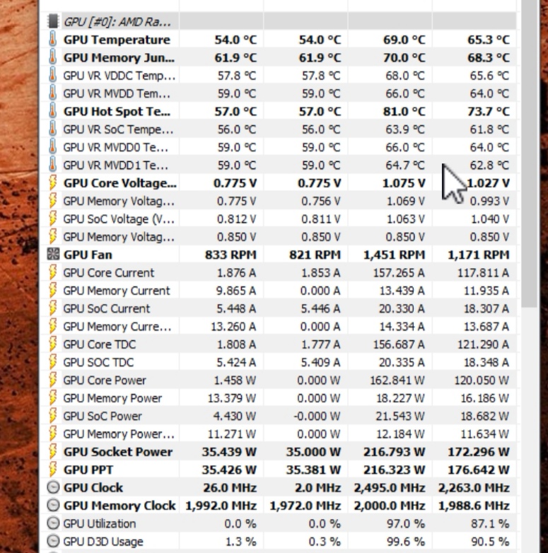 Hab grade n bissl COD gezockt.. 2650MHz und 1100mv in Wattman... Takt im Spiel lag zwischen 2450 und 2500 ca...