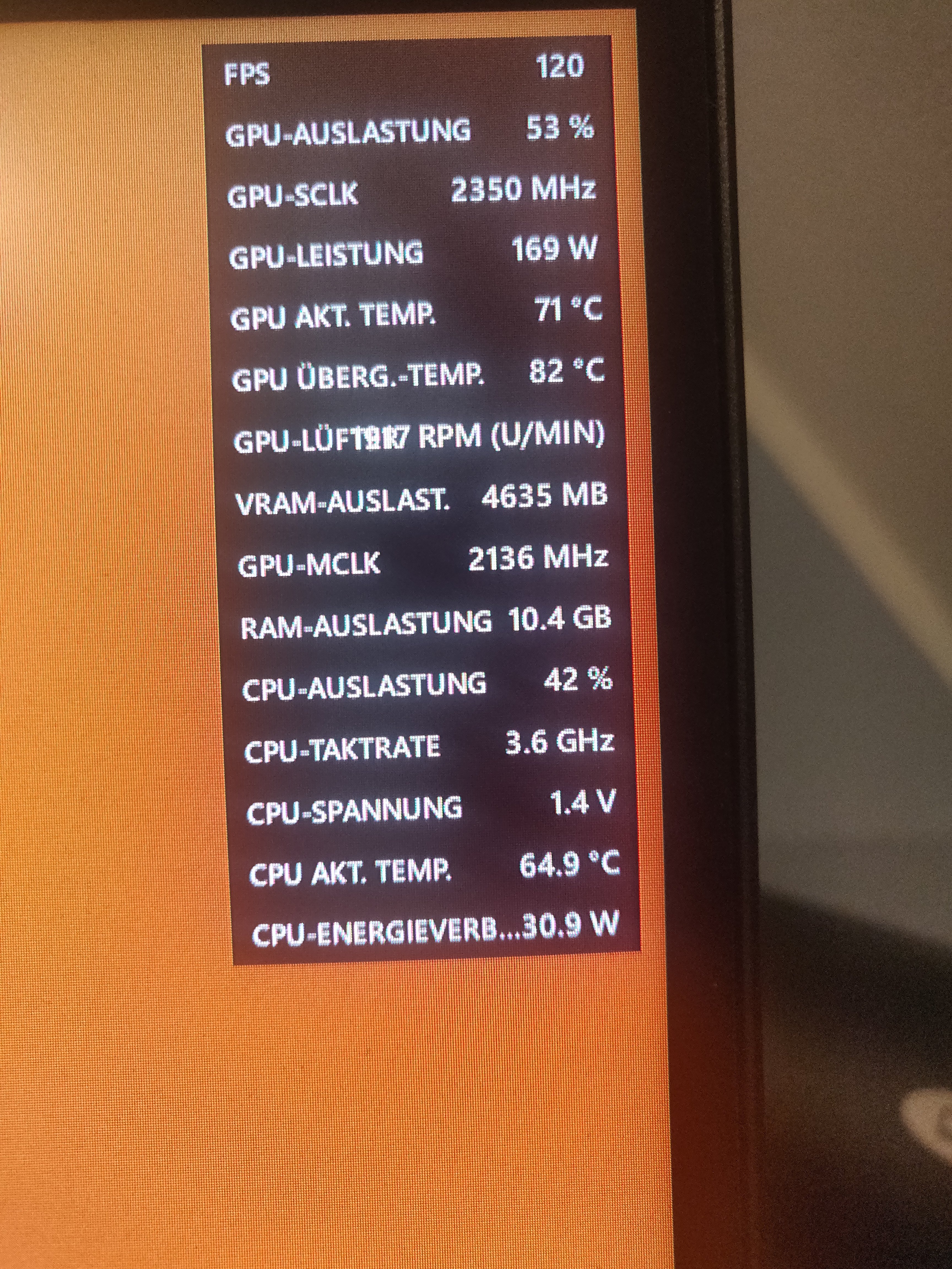 Ich habe hier ne Referenz 6700 XT. GPU-Core läuft auf Standard, GDDR auf 2150, Spannung 1,1 Volt. Alle Tests geben bei der Karte ~ 230 Watt an. Ich komme hingegen trotz +15% Leistungsaufnahme im Treiber nicht auf mehr als 185 Watt (3dmark GPU Graphics Test 1), gemessen mit AMD-Treiber und MSI Afterburner. Wieso ist das so? 8 Pin und 6 Pin sind natürlich alle angeschlossen.
