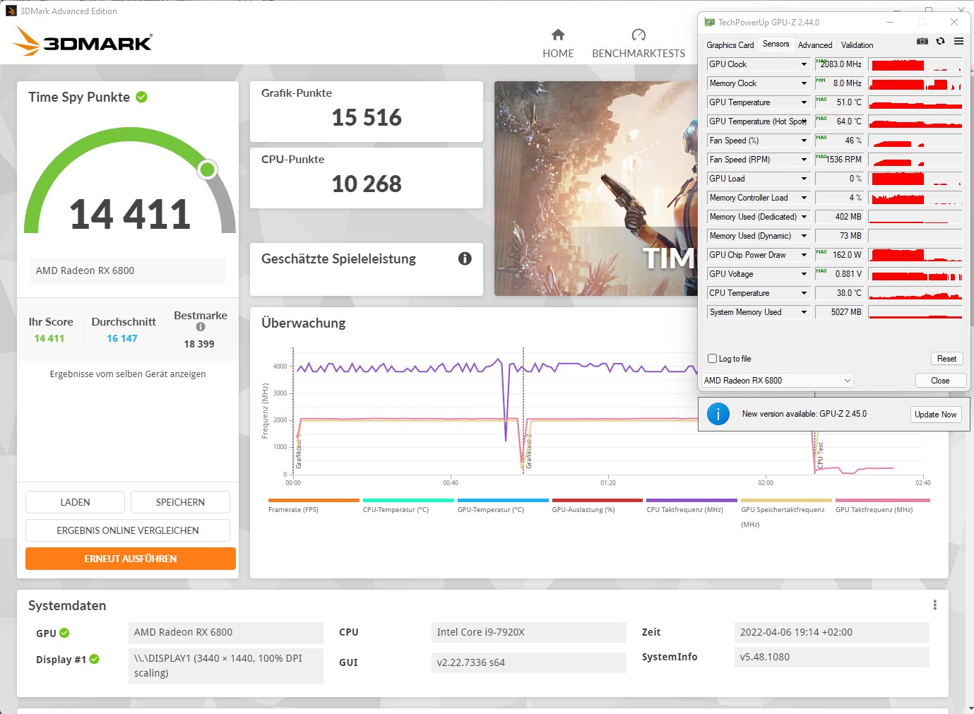 ... probieren, obs @1080p oder 720p ein paar Points mehr gibt