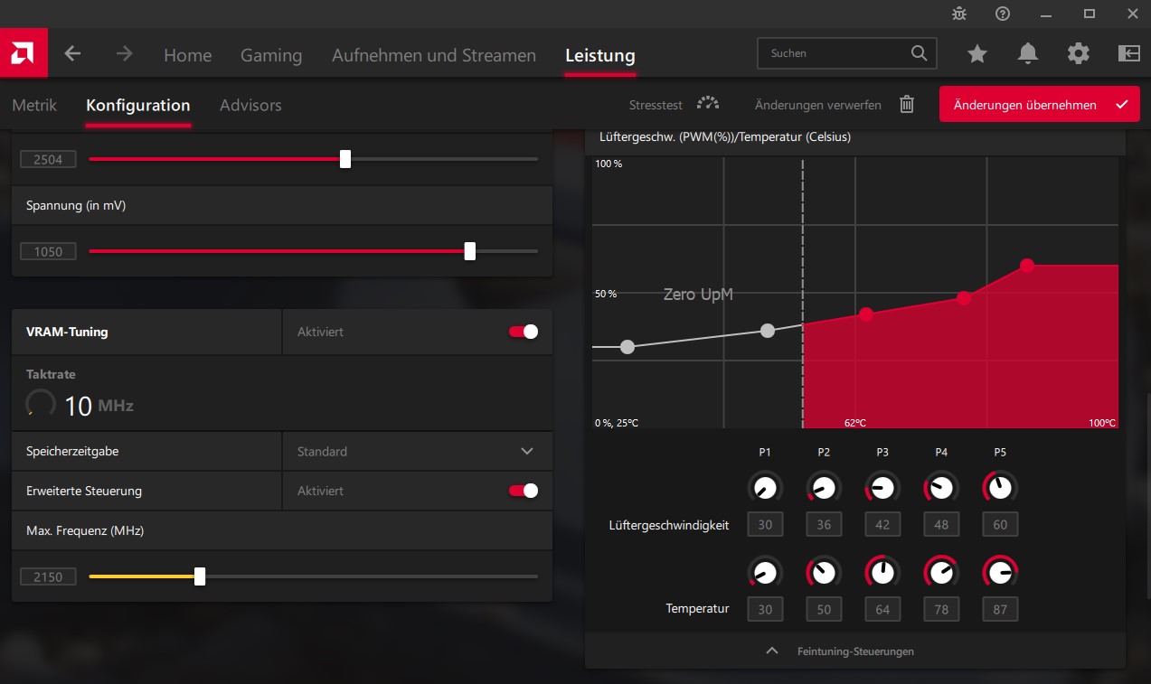 Ich habe eine RX6700XT, im Treiber ist mir bei Vram-Tuning die Option Speicherzeitangabe > Standard/Schnelles Timing aufgefallen.