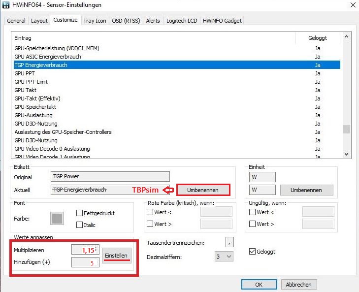 den Wert dann in TBPsim umbenennen, um sich den Wert in HWinfo für log.files verfügbar zu machen.