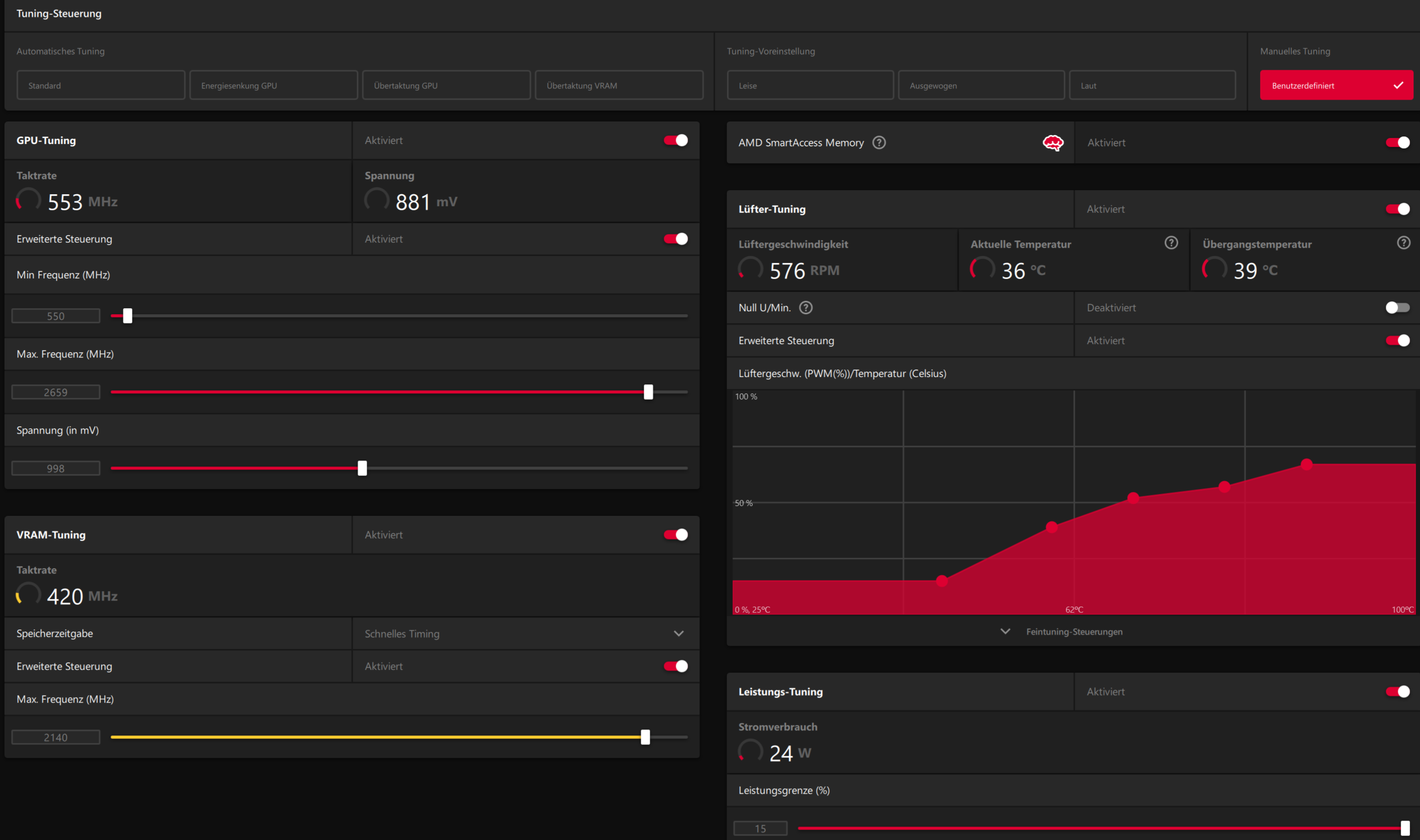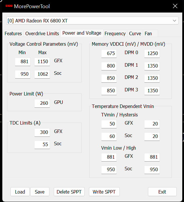 Ich habe bei meiner Gigabyte 6700XT Eagle via morePower Tool das Bios von einer 6700XT Eagle OC geladen, testweise um zu sehen, ob mir das noch Spielraum beim OC/UV ermöglicht.