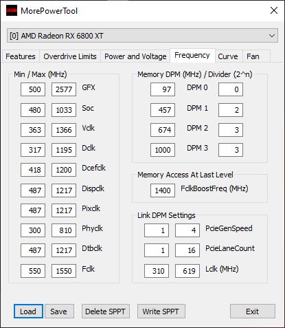 Habe Deine Werte in MPT/Wattman lt. Screenshots bei meiner 6900XT eingetragen:Pizza! schrieb:Das finde ich auch interessant. Hab die Werte für meine 6900XT mal übernommen, mit winzigen Anpassungen.