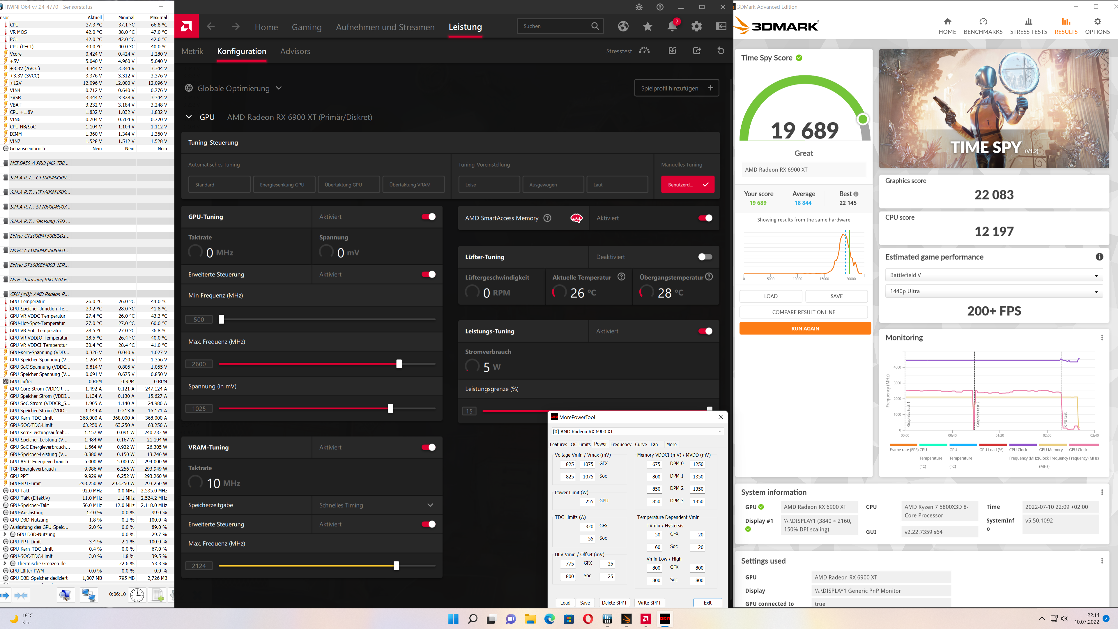hab den Strom"ver"brauch auf 200W gedeckelt im MPT. Dann mit 15% PT also 230W Maximum. So kommen die 18.700 Punkte im Grafikscore auch hin. mit 20% mehr Strom werden es nur noch 15% mehr Grafikscore. Man kämpft also über den Sweetspot mit dem Strombedarf und bekommt nicht linear gleich viel Leistung. Deshalb war mir das Abriegeln wichtig.