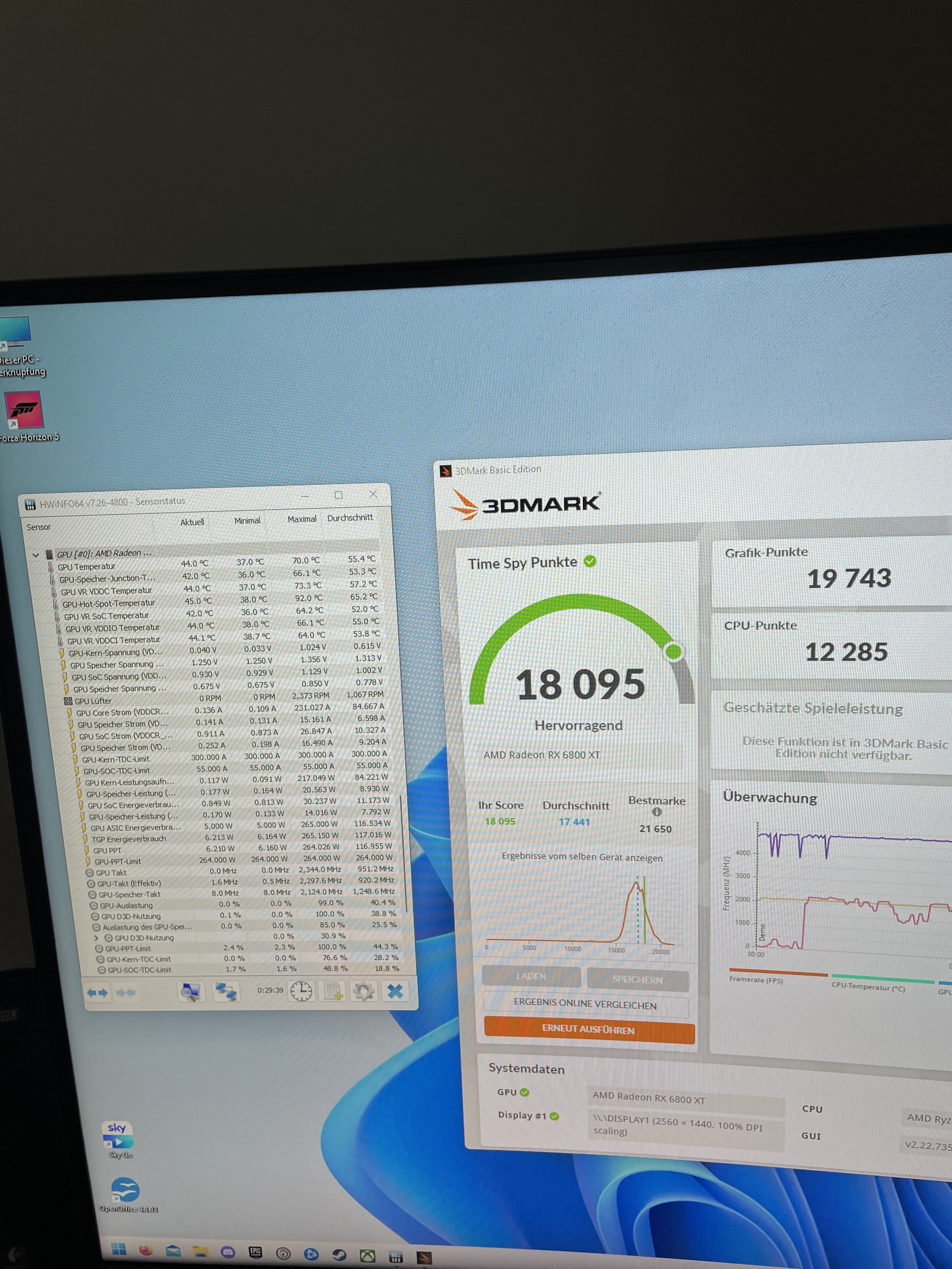 Afterburner Log ist vom TS durchlauf, GPU-Z und WM vom laufenden Furmark im Hintergrund: