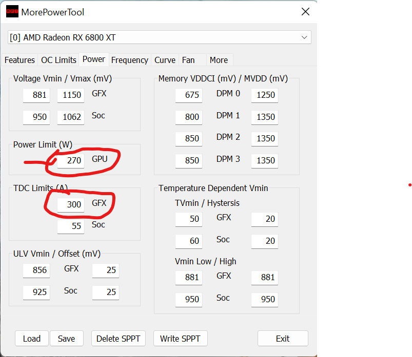 Genau, um Voltage VMin geht es mir. Und du hast recht, bei meinem 200W-Run in der Liste hatte ich die noch unverändert bei 825 mV.