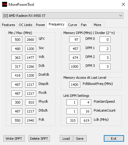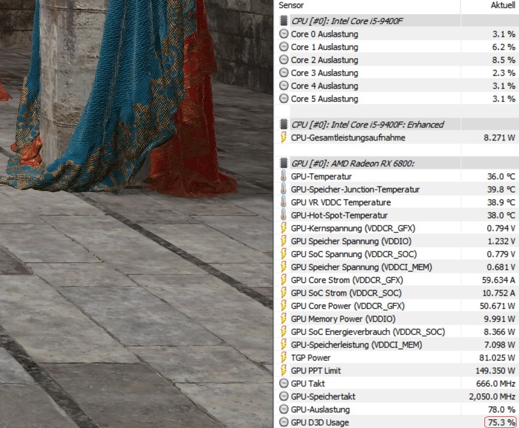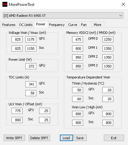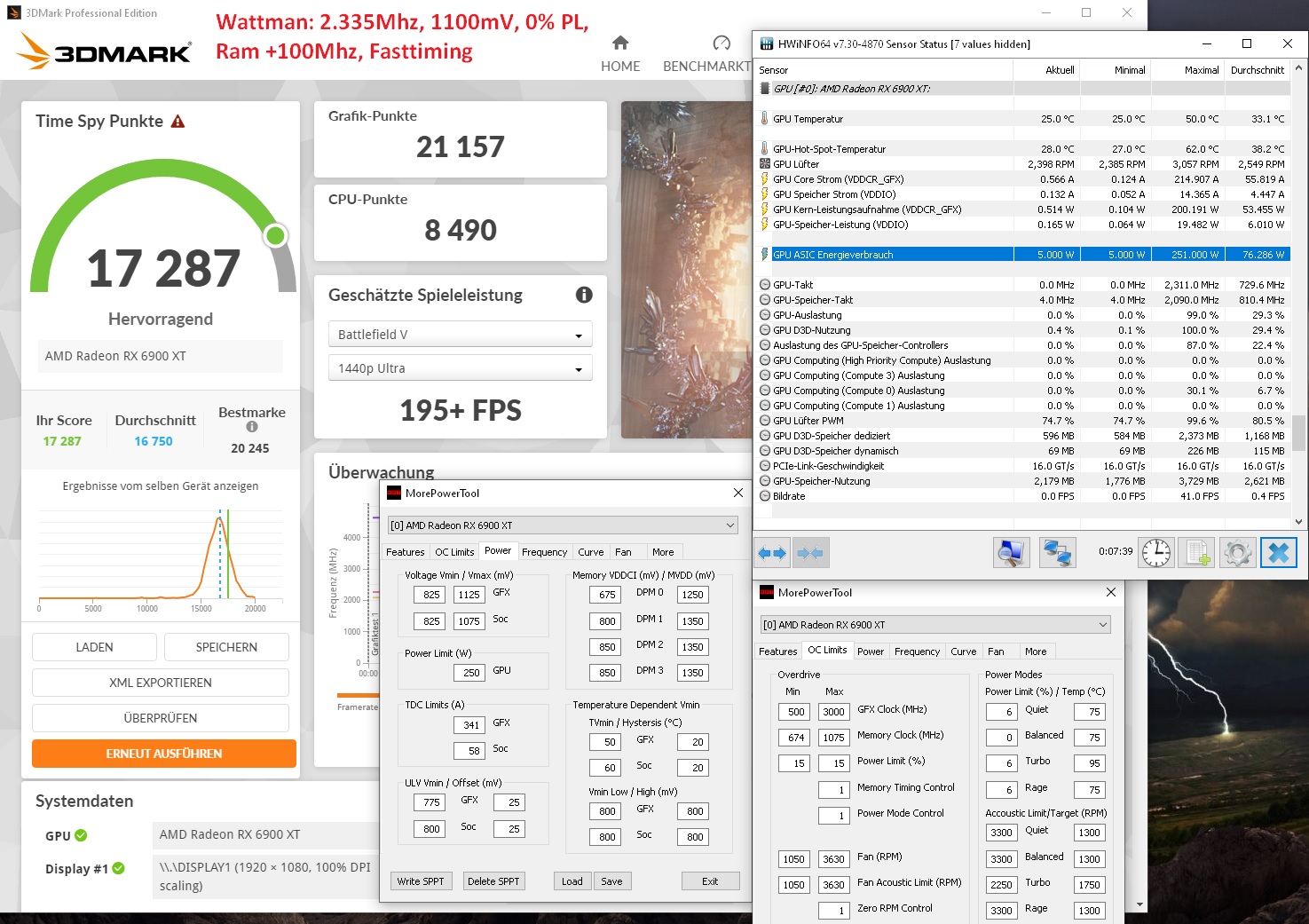 Power Limit MPT recht hoch aber durch Wattman -8 auf 250W.