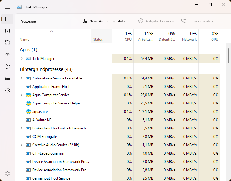 So sieht dann der Taskmanager unter "A" aus. Bei euch?