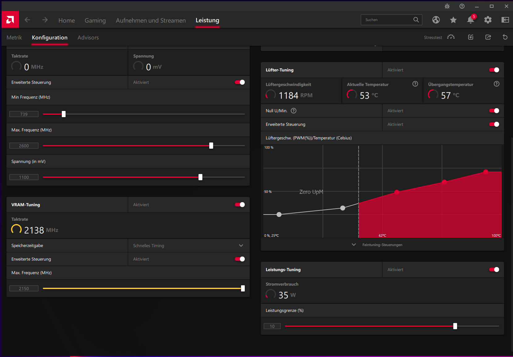 Ist zwar irgendwie auch verkehrt, so eine Karte nicht wie eine Zitrone auszuquetschen, aber im Alltag merkt man paar Prozent mehr oder weniger Performance eh nicht und eigentlich spiele ich eh kaum was, das die Karte wirklich an die Grenze bringt. Aber Hauptsache haben, ne random 6700 XT wÀre ja zu langweilig gewesen.
