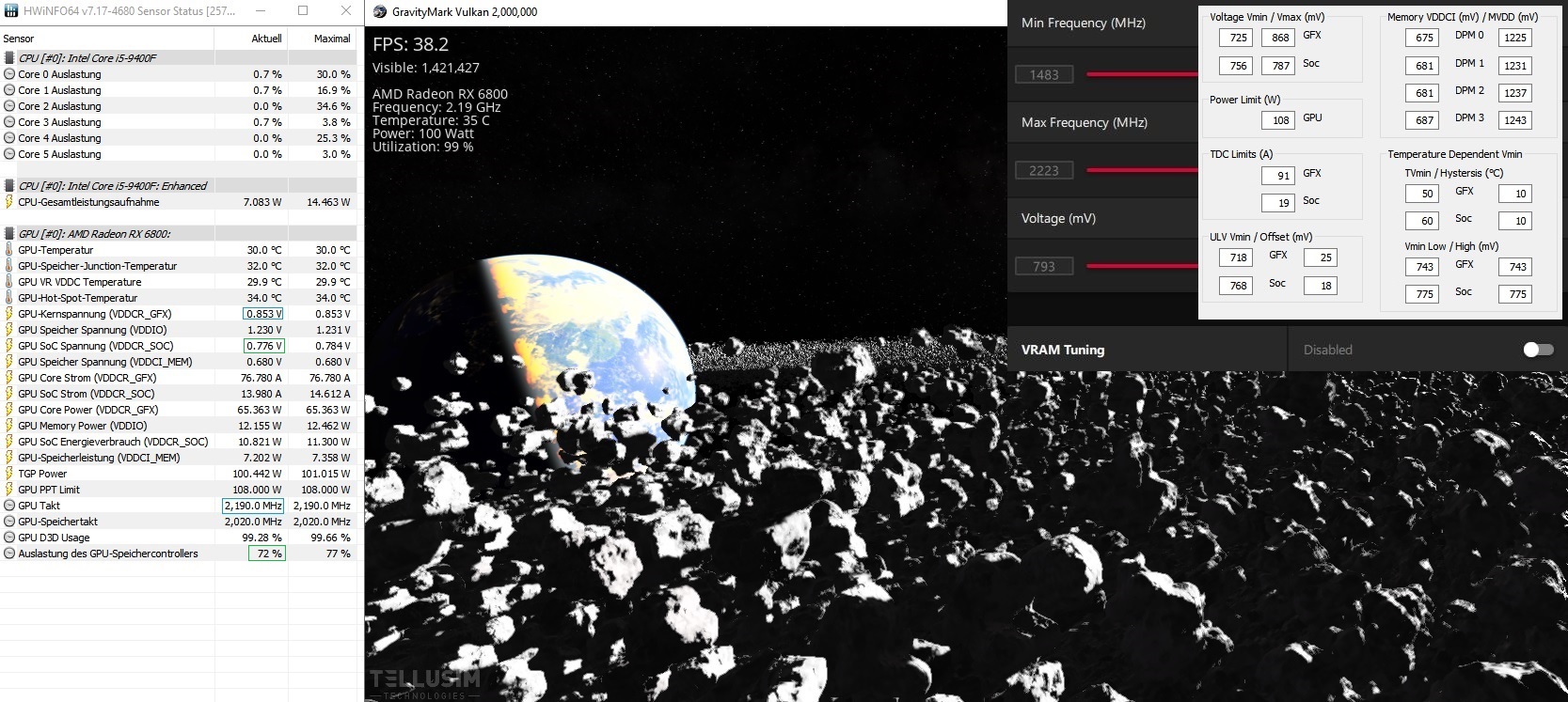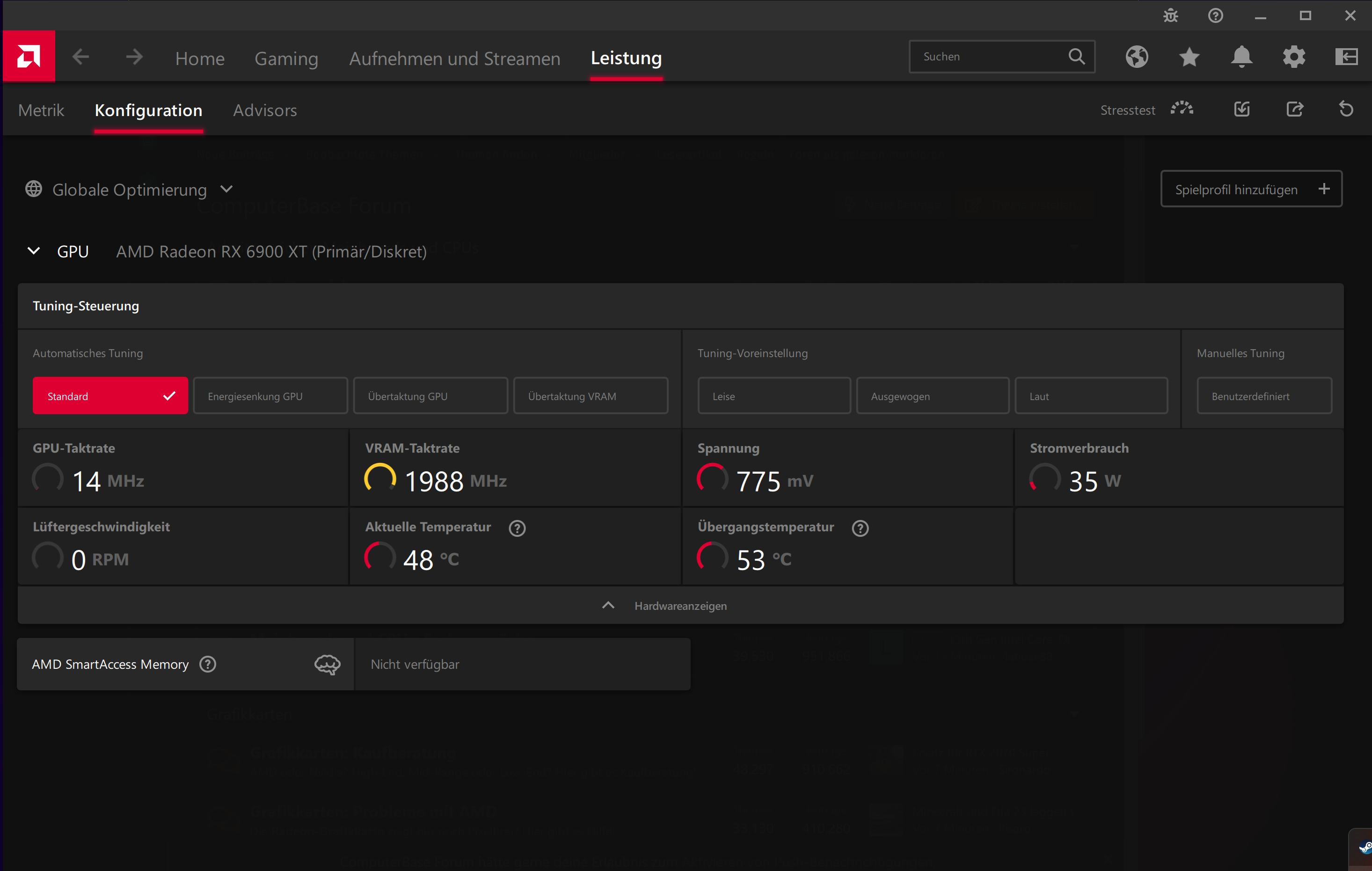 Derzeit lÀuft meine RX 6900 XT mit 50 MHz und 20mV mehr (also 2450 MHz Takt und 1150mv) und damit ist sie a) stabil und b) keine Framedrops.