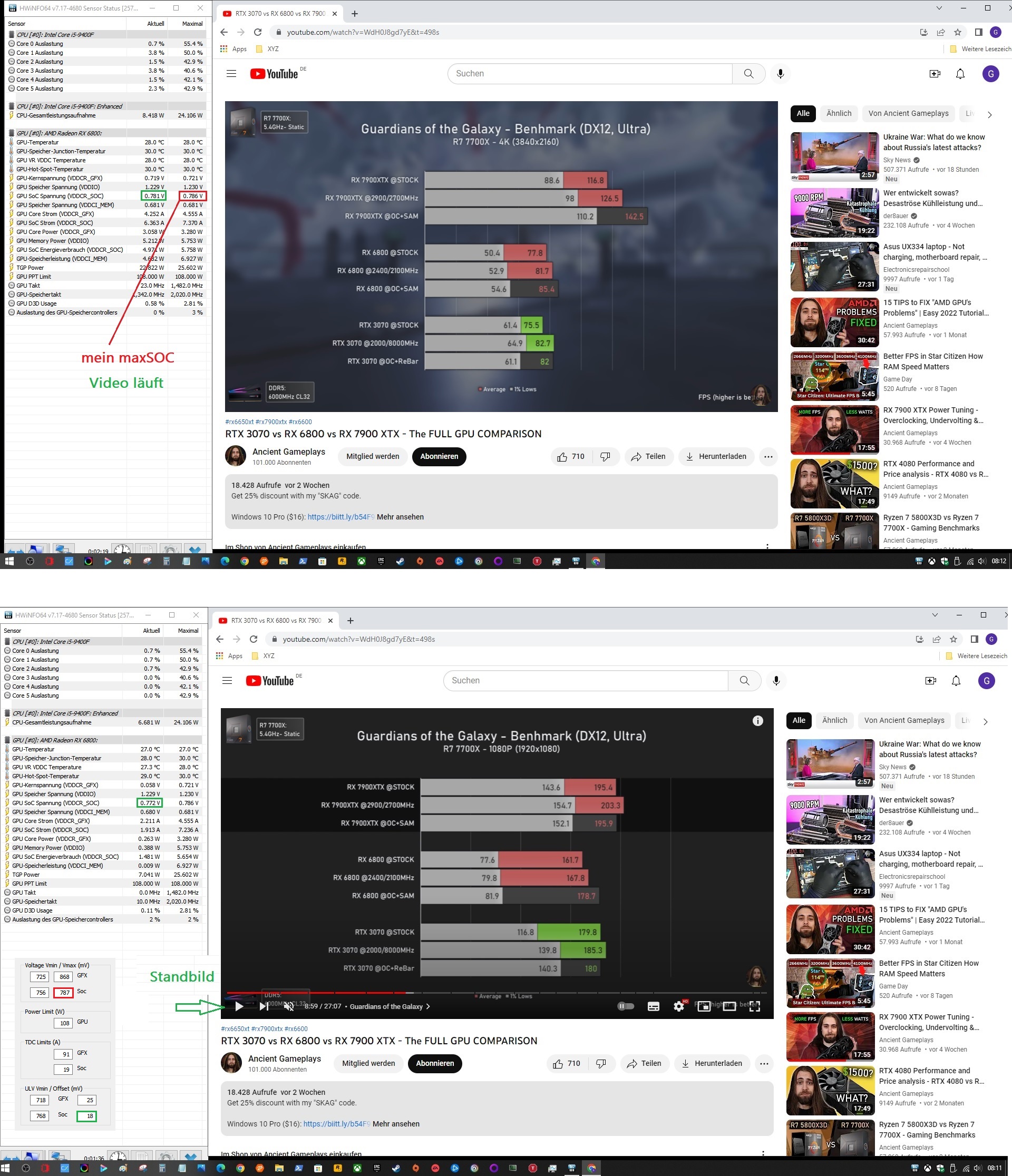 ob tatsÀchlich die Graka irgendwas Besonderes macht (Gputakt dropt kurz oder gar SOC+Vram)