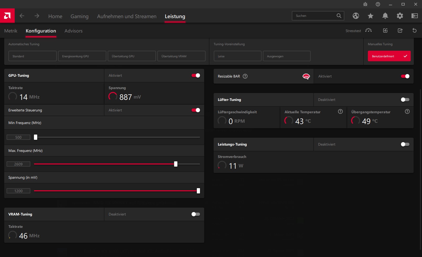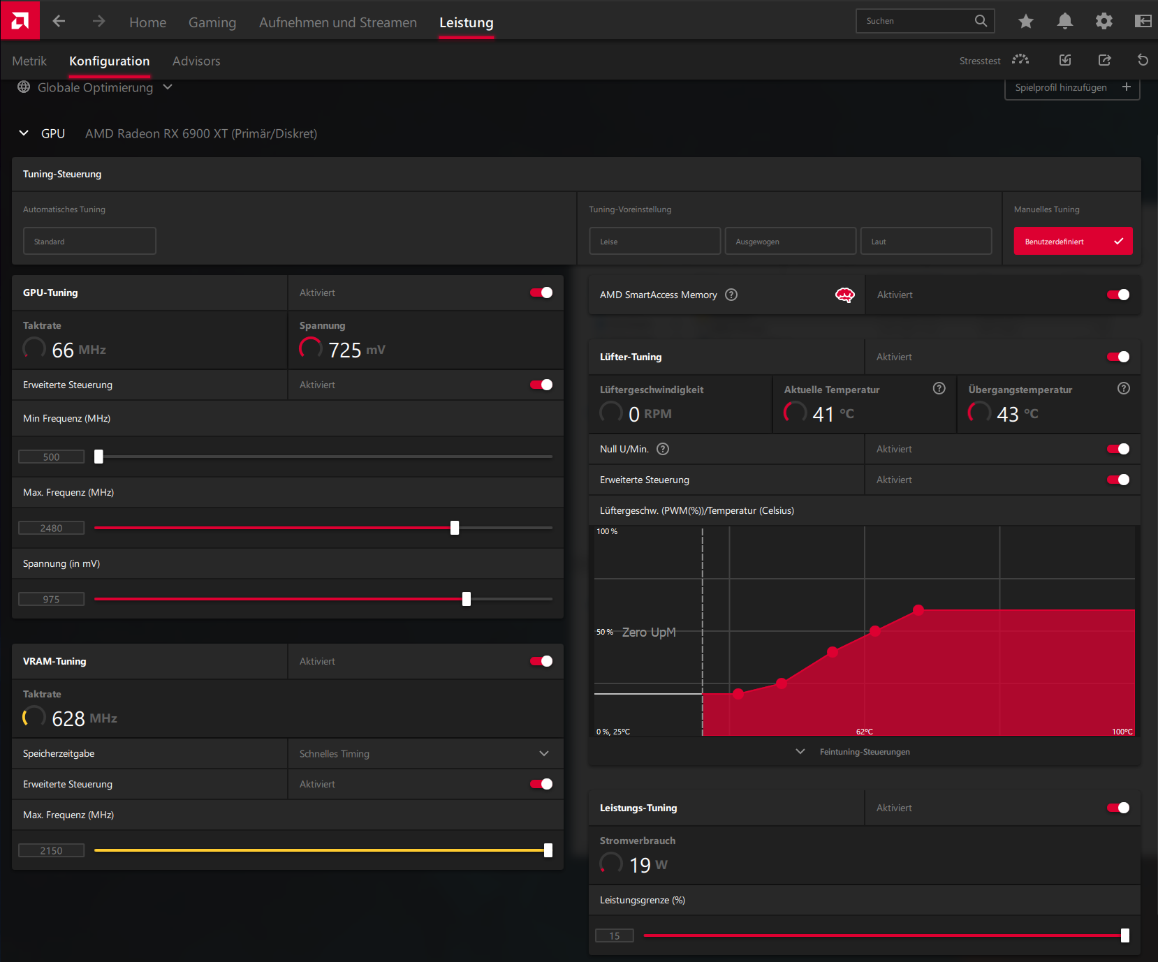 Ich habe bei mir die vom Thread: 6900XT auf Effizienz getrimmt im Beitrag #1 vorgenommen Einstellungen ebenfalls eingestellt und es hat eigentlich alles auch ziemlich gut geklappt, ohne, dass irgendwelche Komplikationen aufgetreten sind. Einen Benchmark wie Time Spy oder Fire Mark habe ich nicht durchgeführt, weil ich es über Steam nicht downloaden konnte und ich kein Geld für 3D Mark ausgeben wollte.