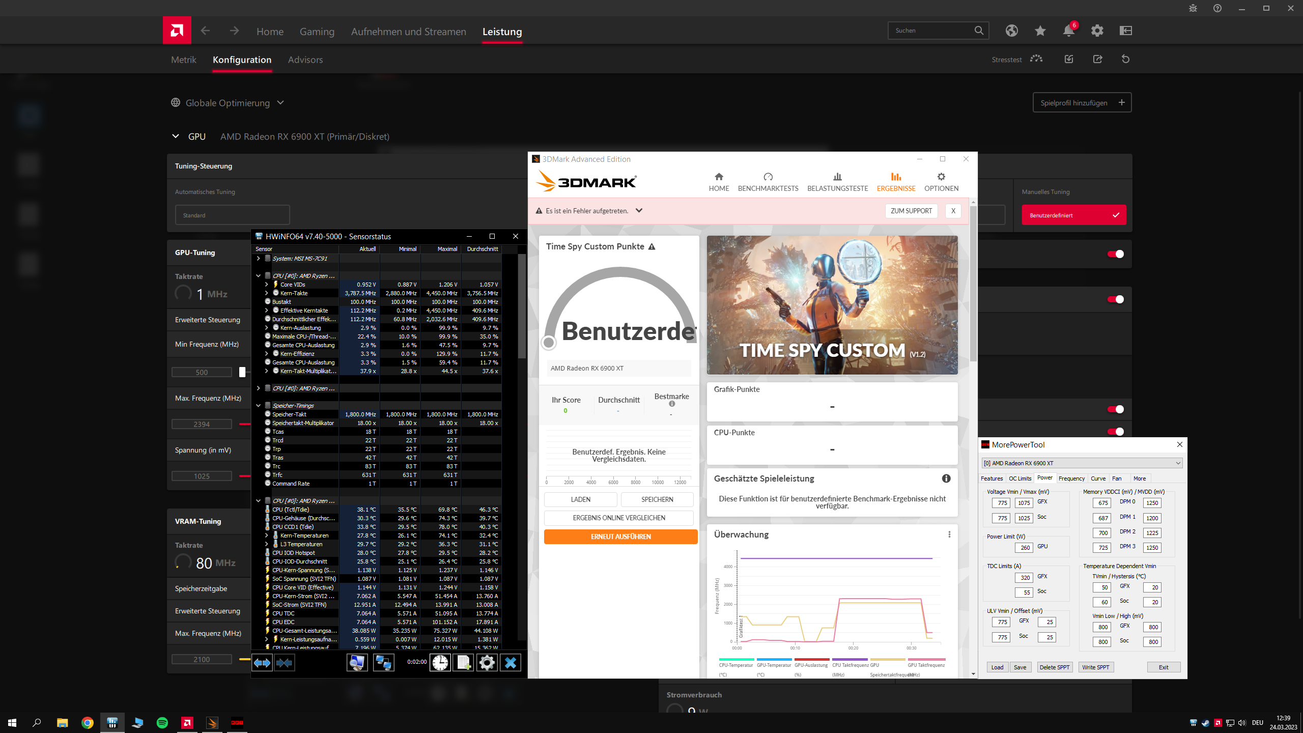 Ab 1070mV läuft alles gut. Letztendlich habe ich bei 1070mV die Temperaturen gesenkt, 23W weniger Leistungsaufnahme, und das ganze bei höherem Score im Time Spy, verglichen mit dem Standard der Karte. Insofern ist das ja schon mal nicht ganz verkehrt und kann wohl als Undervolting bezeichnet werden. Ich werde zwischendurch immer mal weiter testen und falls sich neue Erkentnisse ergeben, werde ich es dich wissen lassen. Vielen Dank für deine Mühe und Hilfe ✌️ lieben Gruß