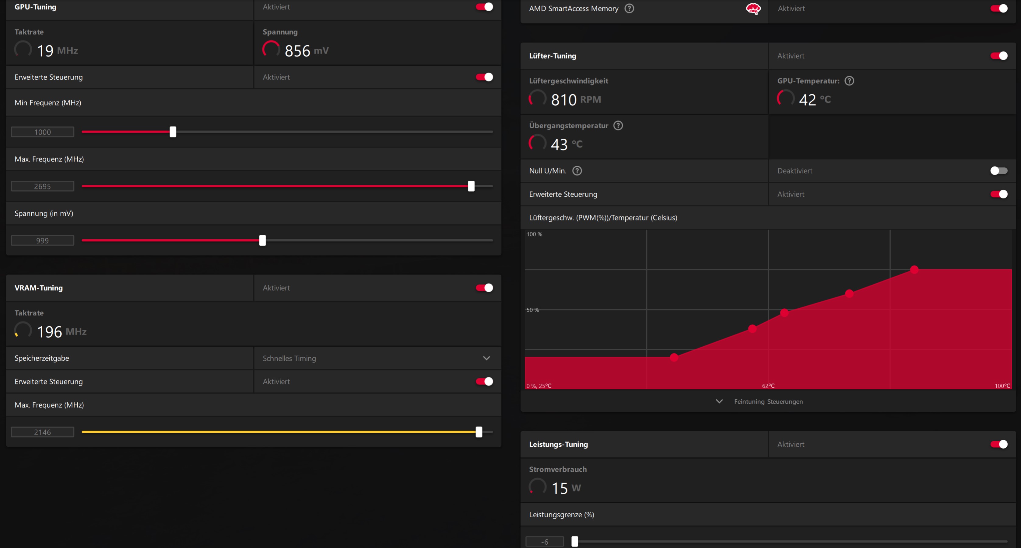 @MSI-MATZE 2650MHz ist halt schon ne Hausnummer, bei Standard Spannung ? der 2. Screenshot finde ich aber schon etwas hoch mit 85°C bei um die 2400MHz, komme bei mir mit 1050mv im Schnitt nie über 80°C und das bei minimaler Lüfterkurve