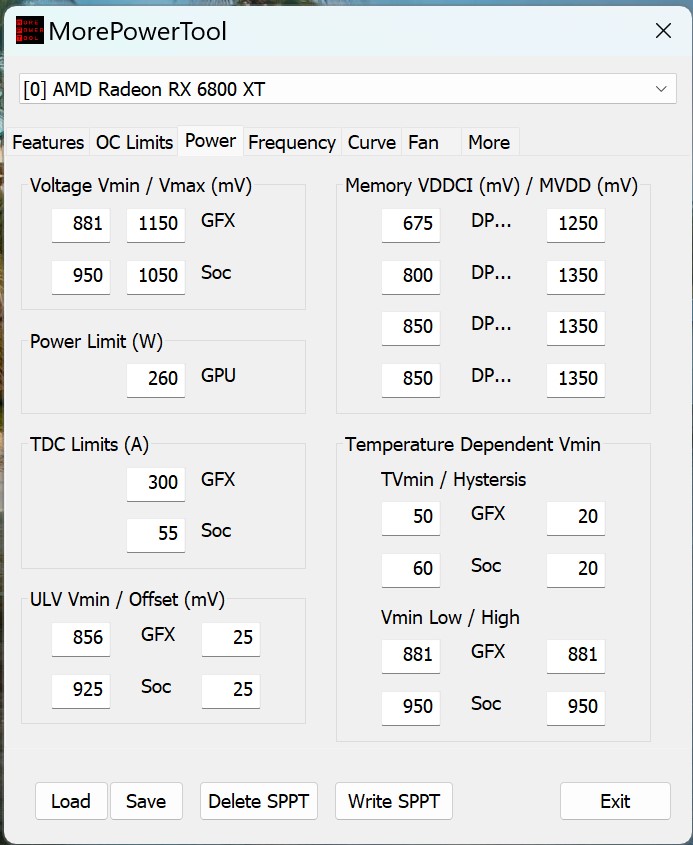 bei mir sind weder die GFX=GPU-Volt noch die SOC-Volt real so hoch wie der maxWert im MPT