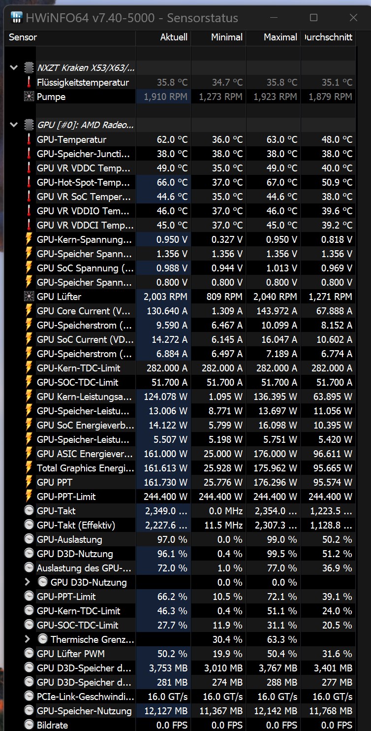 wobei bei Hogwarts liegen die 1150mv laut Anzeige ja an, auch wenn du da brachial auf knapp 2650MHz kommst, schon krasse Hausnummer, wobei Dying Light 2 mit seinen 2400MHz und 85°C bei 240W au net so gesund aussieht, obwohl nur 1060mv anliegen
