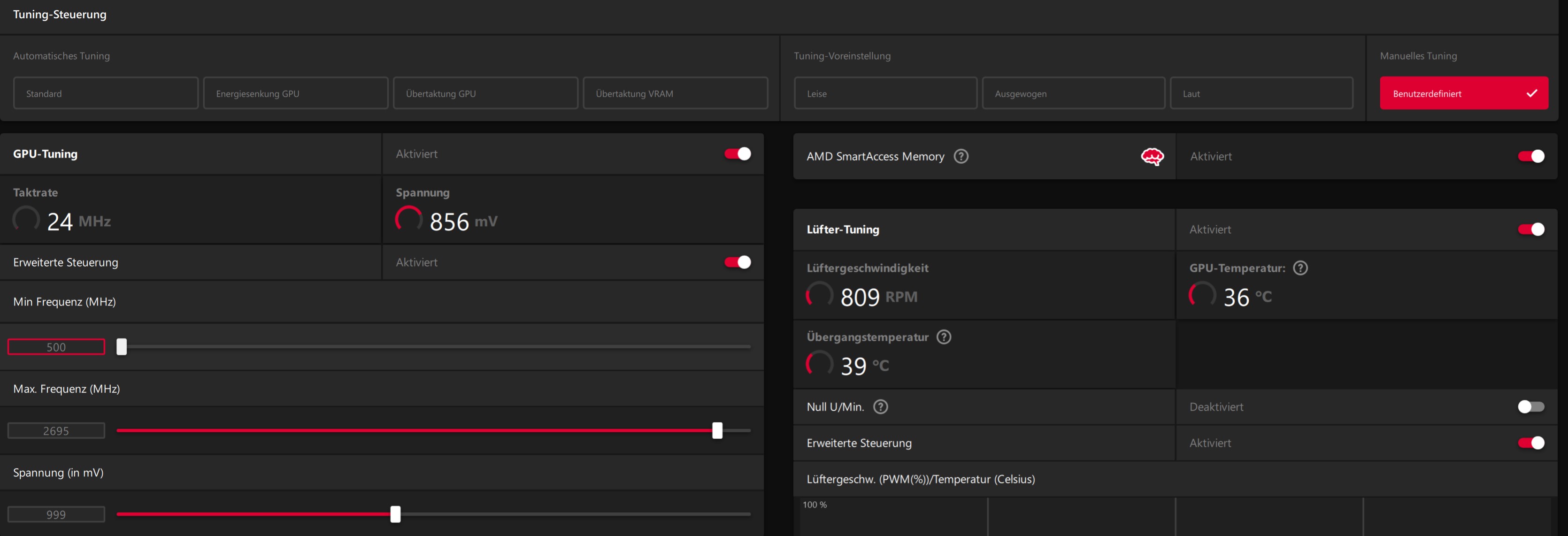 Im WM sollte der niedrigste Temp.wert der Kurve höher als die aktuelle IDLE-temp. sein, dann geht der Lüfter