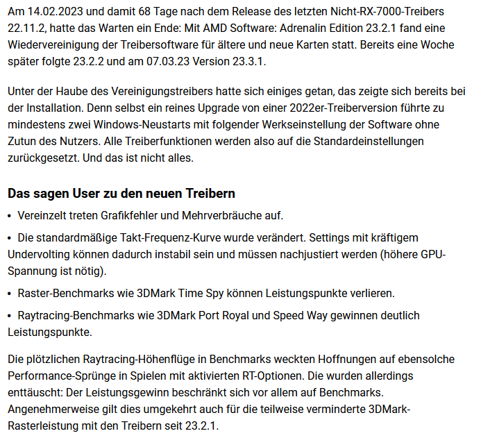 Du meinst sicher 22.11.2, denn die Dezember-Treiber waren nur für RDNA 3. Obwohl du nicht schreibst, was er bei dir verändert hat, nehme ich an, dass du das Undervolting verringern musstest und die TS-Scores sanken. Und ja, das hat noch jemand bemerkt.UnidkQ schrieb:Seitdem der Treiber 22.12.2 nicht mehr bei mir drauf ist, braucht meine 6800XT Red Dragon 1070MV bei eingestellten 2450 MHz, damit erreiche ich im Timespy mit +15 % PT ~20400 Punkte. Hat noch jemand gemerkt, dass der Treiber da was verändert hat?