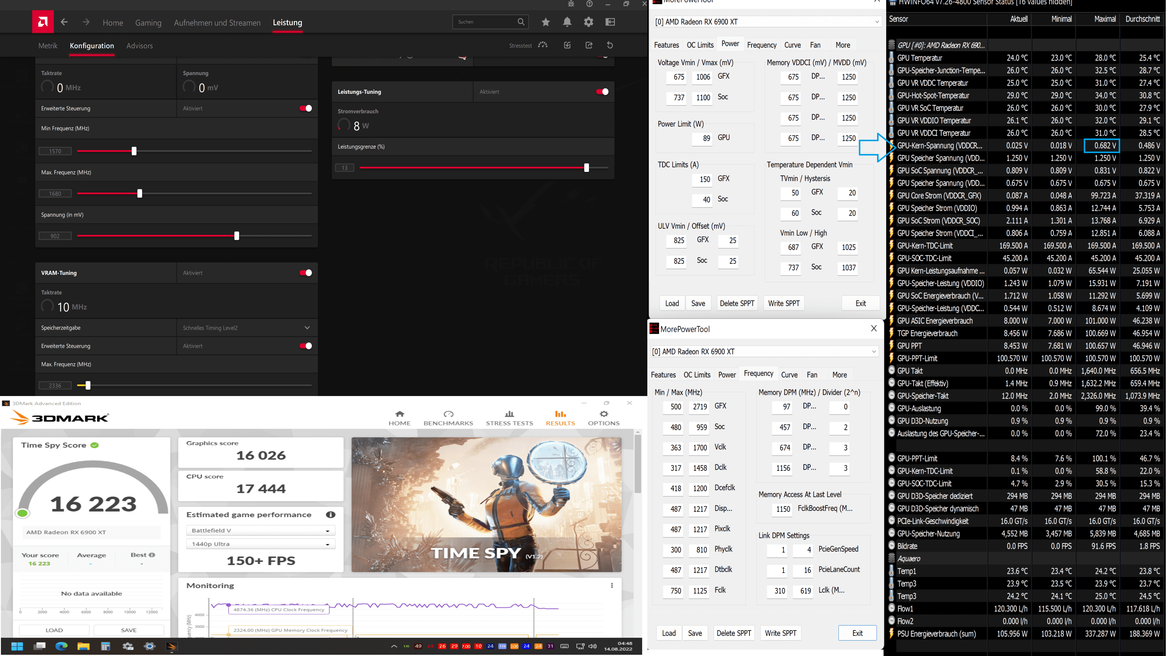 Rechne mal nach 1175mV(RX6900) zu 1000mV = 175mV Offset!