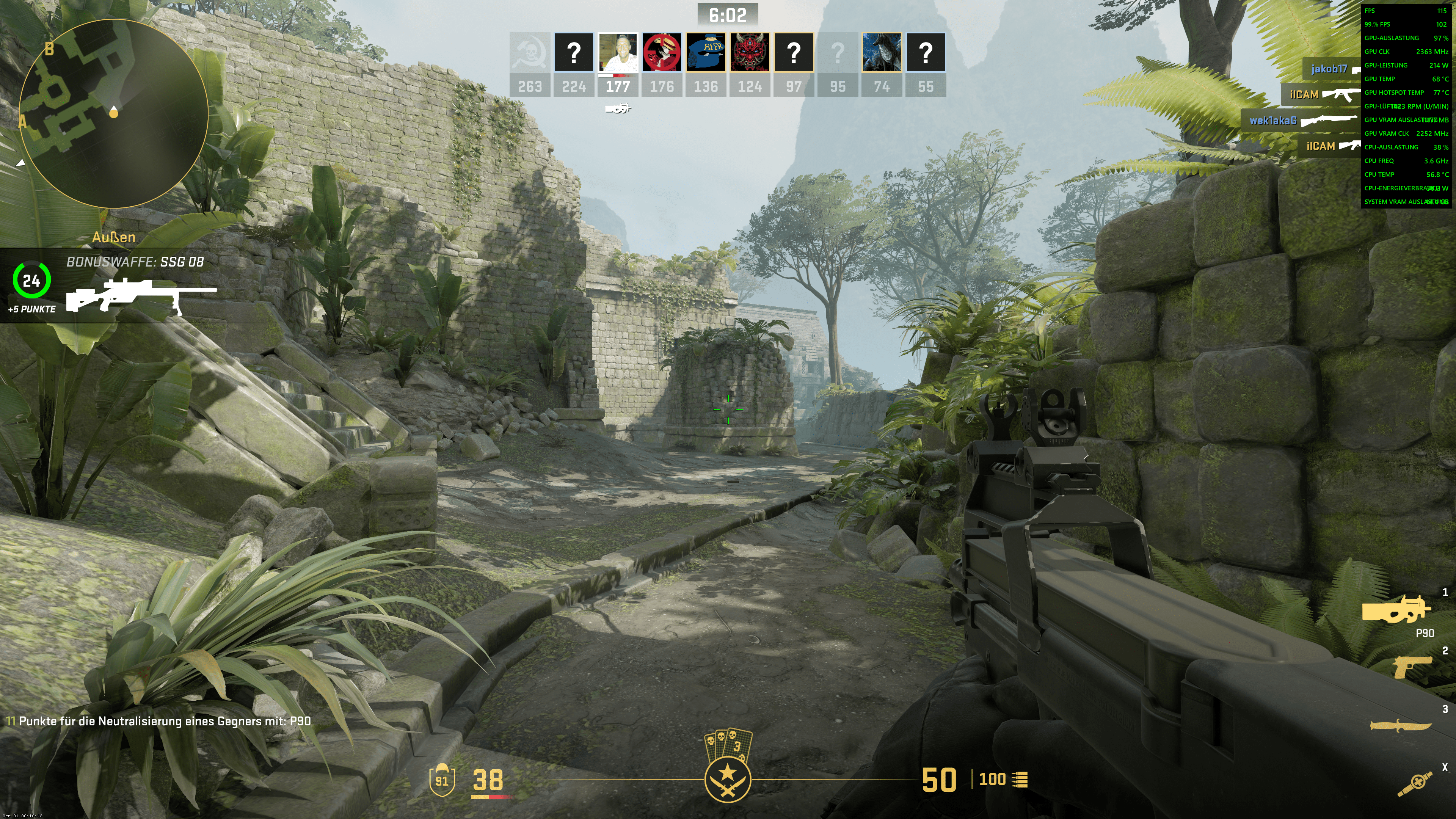 Ich hatte gestern mal ein paar Stündchen CS2 auf Max Details in 4K gezockt....läuft sehr smooth aber schön ist was anderes😁 Aber spielen kann man es gut👍 Leider geht das Overlay vom AB nicht...Darum muss ich das vom AMD benutzen....Weiß jemand wie ich die Überlappung von einigen Zeilen beheben kann(Siehe Pics)