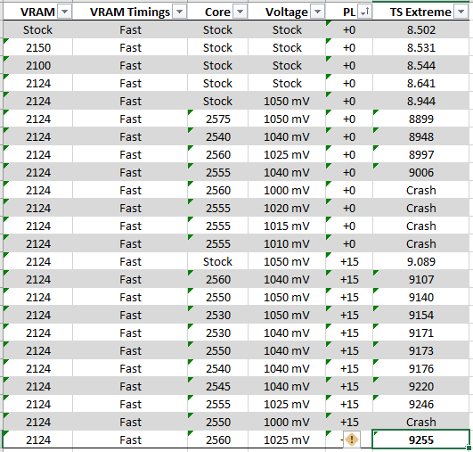 Ich hab auch probeweise den GPU Clock auf niedrige 2100MHz als auch mal -15% beim Verbrauch eingestellt um zu sehen ob es an den hohen Taktraten bzw. hoher Spannung des RAMs liegt aber beides hat nichts gebracht.