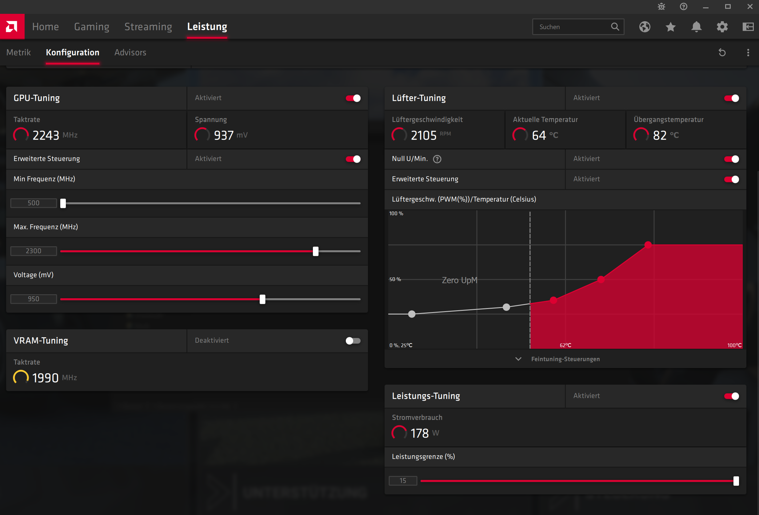 - Das Ändern des max. GFX Clock ist generell möglich, händisch getätigte Taktraten >2800MHz resultieren jedoch in einem Reset auf 500MHz in der Radeon SW