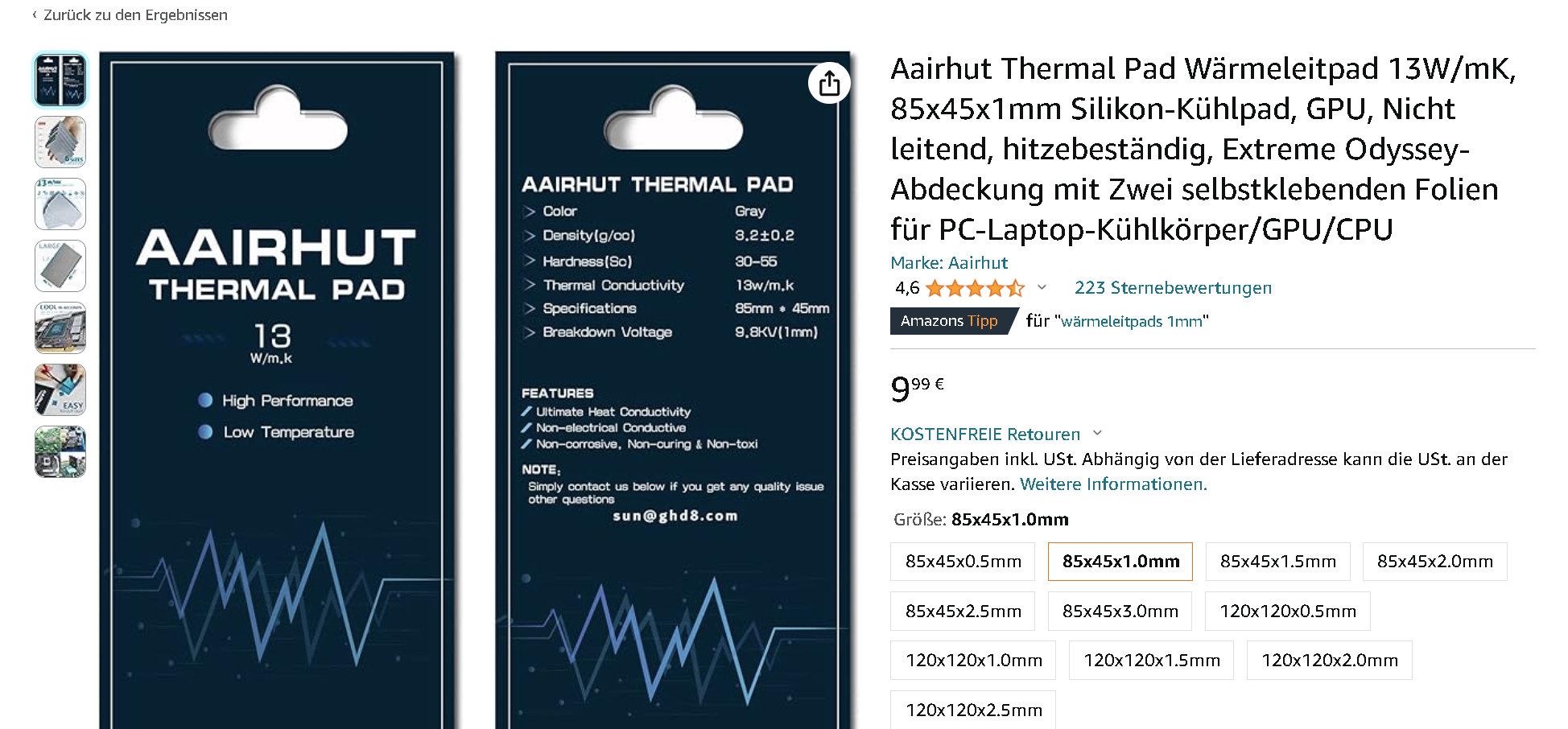 In den Kommentaren steht auch was von 1 mm Pads, falls du die wechseln willst.