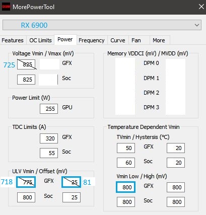 Ich würde denken, das bei einem minTakt=2000MHz ca. 850mV bei der 6900 anliegen sollten.