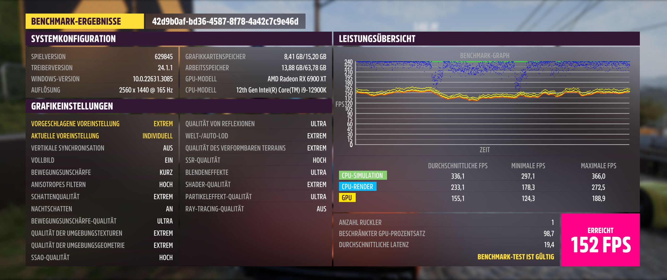 Naja "kaum" ist ein dehnbarer Begriff, schauen wir mal nach. 4090@stock mit leicht höherer Auflösung.DaHell63 schrieb:mit einer RTX 4090 kaum mehr werden