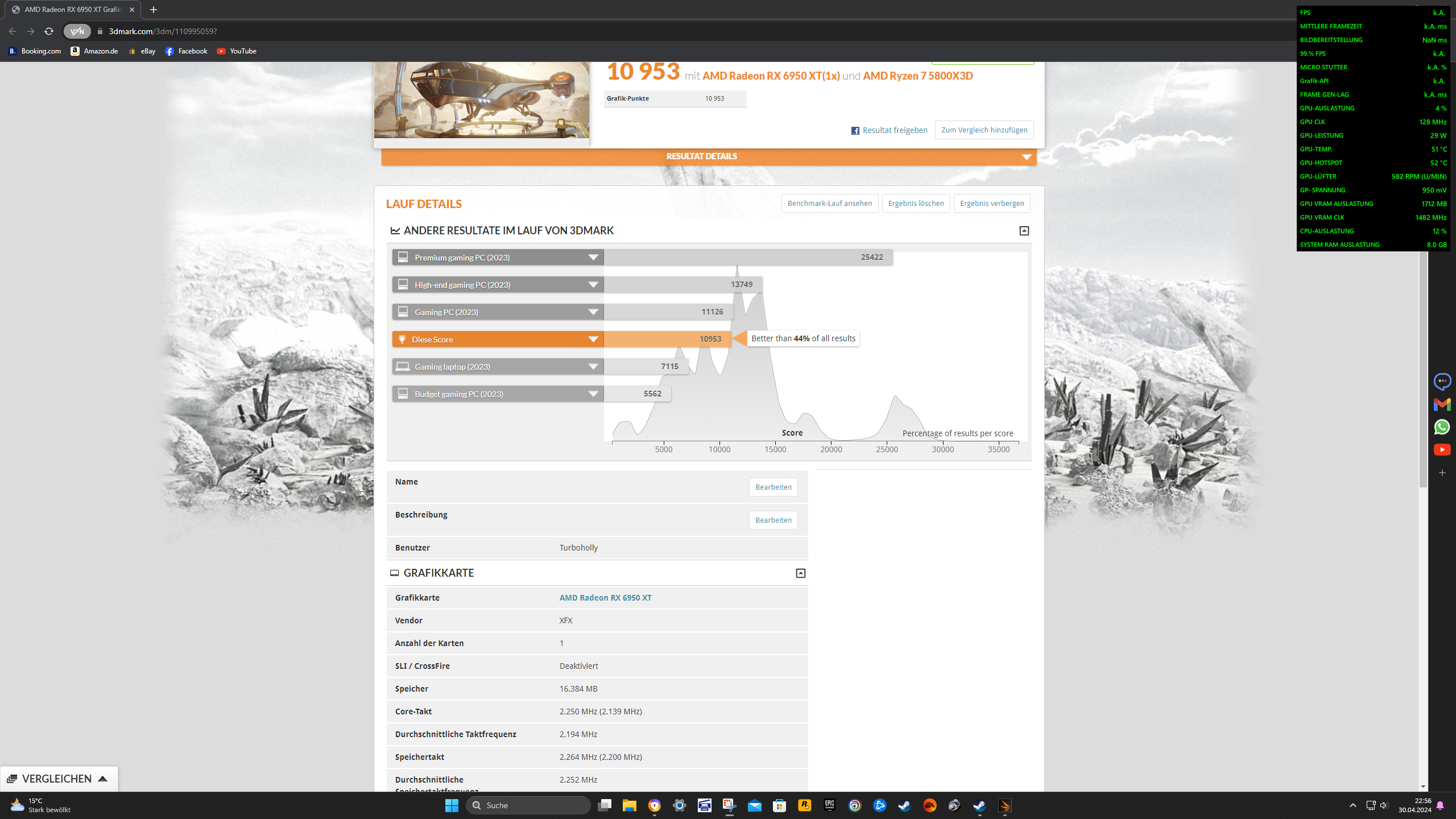hier mal zu Vergleich. Sind zwei Durchläufe hintereinander, da das erste mal die Furmarksysteminfo nicht geladen hatVerak Drezzt schrieb:6950XT Niveau^^, gestern kam ich ja mit meinen default Settings mit 10633 fast an eine 7900GRE ran, hätte ich auch nicht gedacht, aber RT ist für eh kein Thema was den Verbrauch und die geringeren FPS angeht, ggf. mit RDNA7 irgendwann, außer sie legen bei RDNA5 ne ganze Schippe noch drauf, mal schauen wie es nächstes Jahr aussieht
