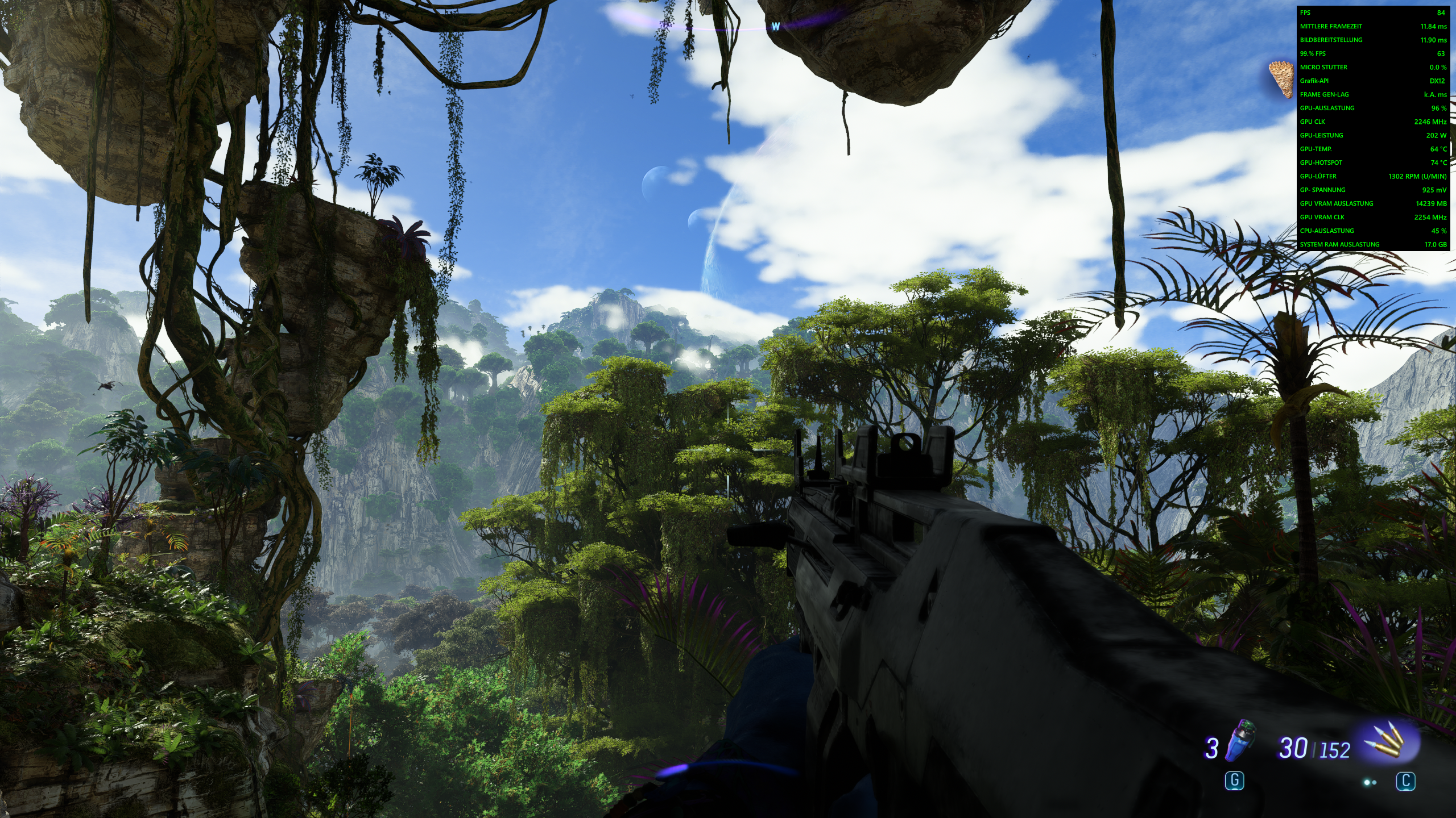 Hier mal ein Stündchen Avatar. erste 10min nur mit FSR und dann habe ich FG zugeschaltet. Gott sei dank Stable. Morgen teste ich noch eben A Pluguetale Requeim und BF2042....dann versuche ich noch weniger Spannung