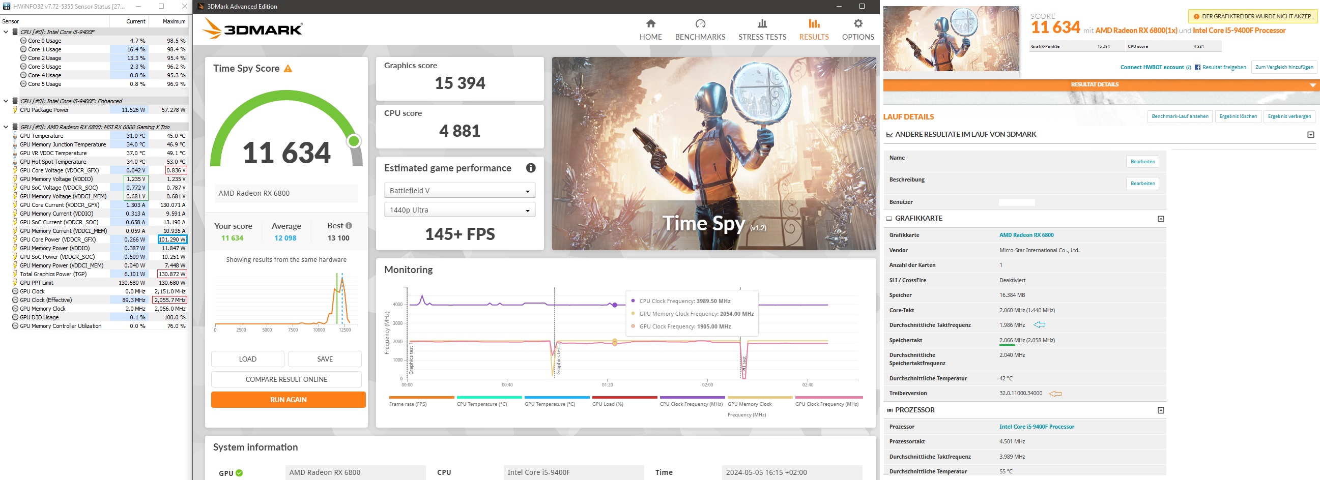 jetzt mal im Sommermodus = 130Wtgp: .... 3dMark kostet i.d.R etwas mehr Watt als Games(nonmaxed)