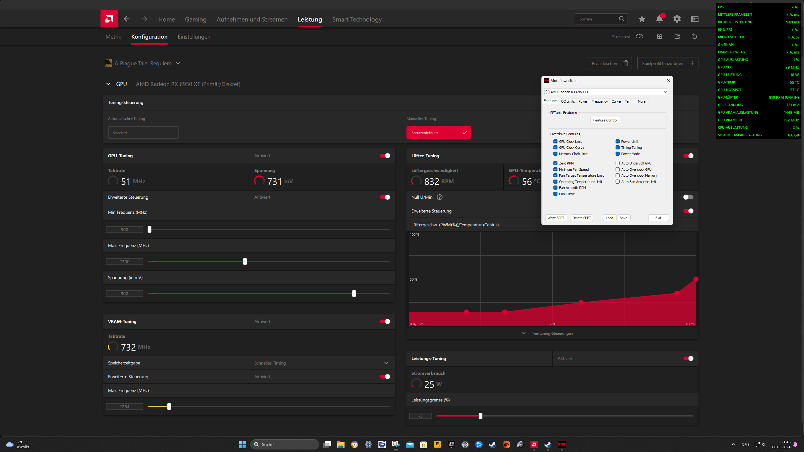 It's only possible with the ShirKhan DP3=1075Mhz trick. Before I learned of that, when just trying to set FT2, I could only get it stable with default settings (2000Mhz - 850mv/1350mv), and if I changed the voltages to 900/1400, it could get up to 2056Mhz FT2 before artifcating. You think running 2150 FT2 for around half a year caused my VRAM to degrade? It's a Gaming X Trio, not a Gaming Z, so it's a regular XTX with the 2660 MHz Fmax limit.GerryB schrieb:I was a little bit surprised, that with your normal 6900xt 2150FT2 was ever possible.
