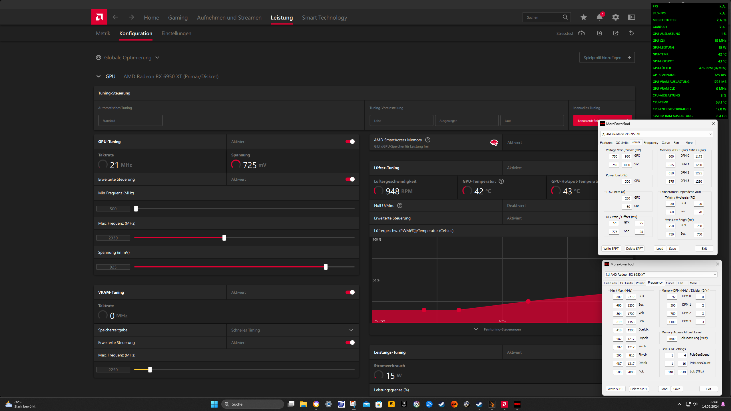 (was mir generell auffällt, ... mit wenig W+MHz muss ich die Volt im Treiber behutsamer einstellen, ...