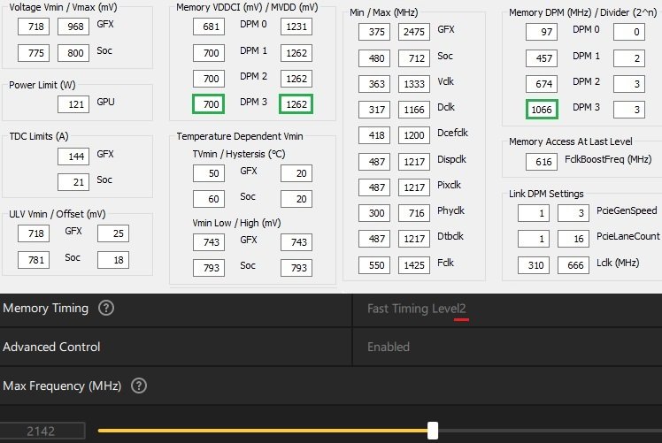 2124-12= 2112MHz eff. und DPM3 so ca. 1058MHz