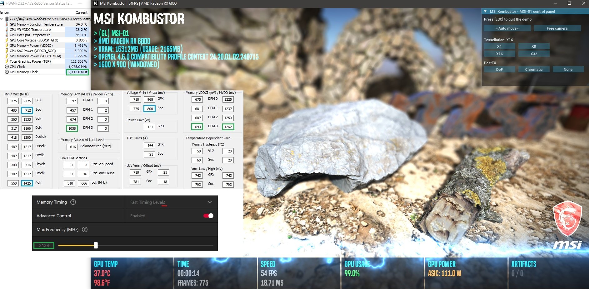 @GerryB 2136 at 693 mv didn't work for some reason; I'm back at 2140 with 700; I don't know if there's any other way I can undervolt my card more. My thermal pads must be as hard as rocks or something, because it doesn't even exceed 56 degrees in game. I always have the fps capped to my monitor's refresh rate.