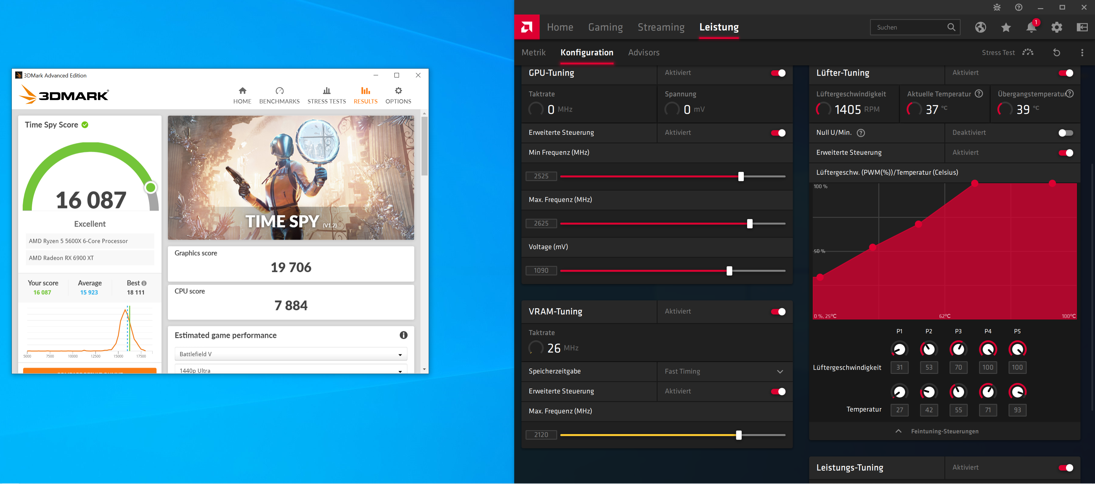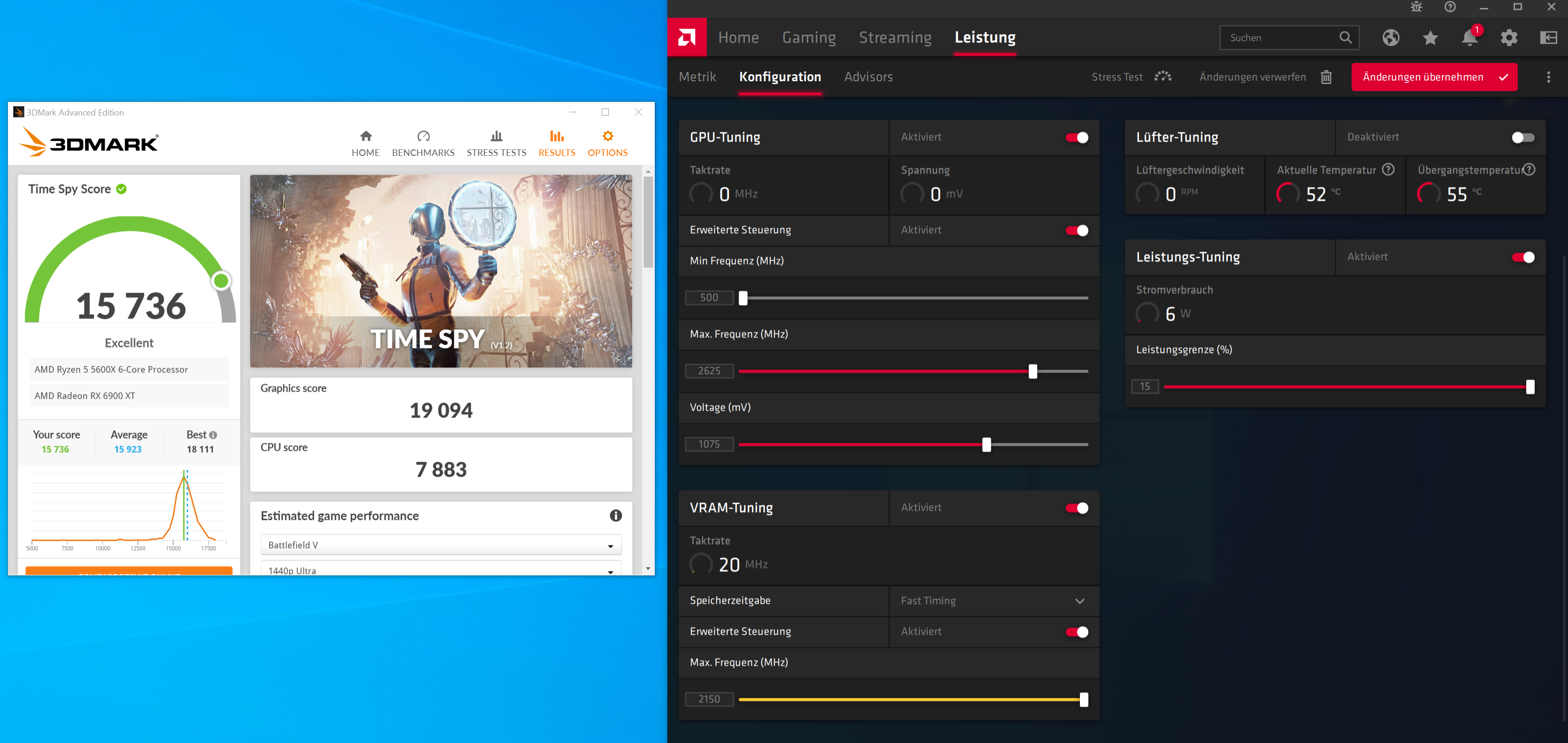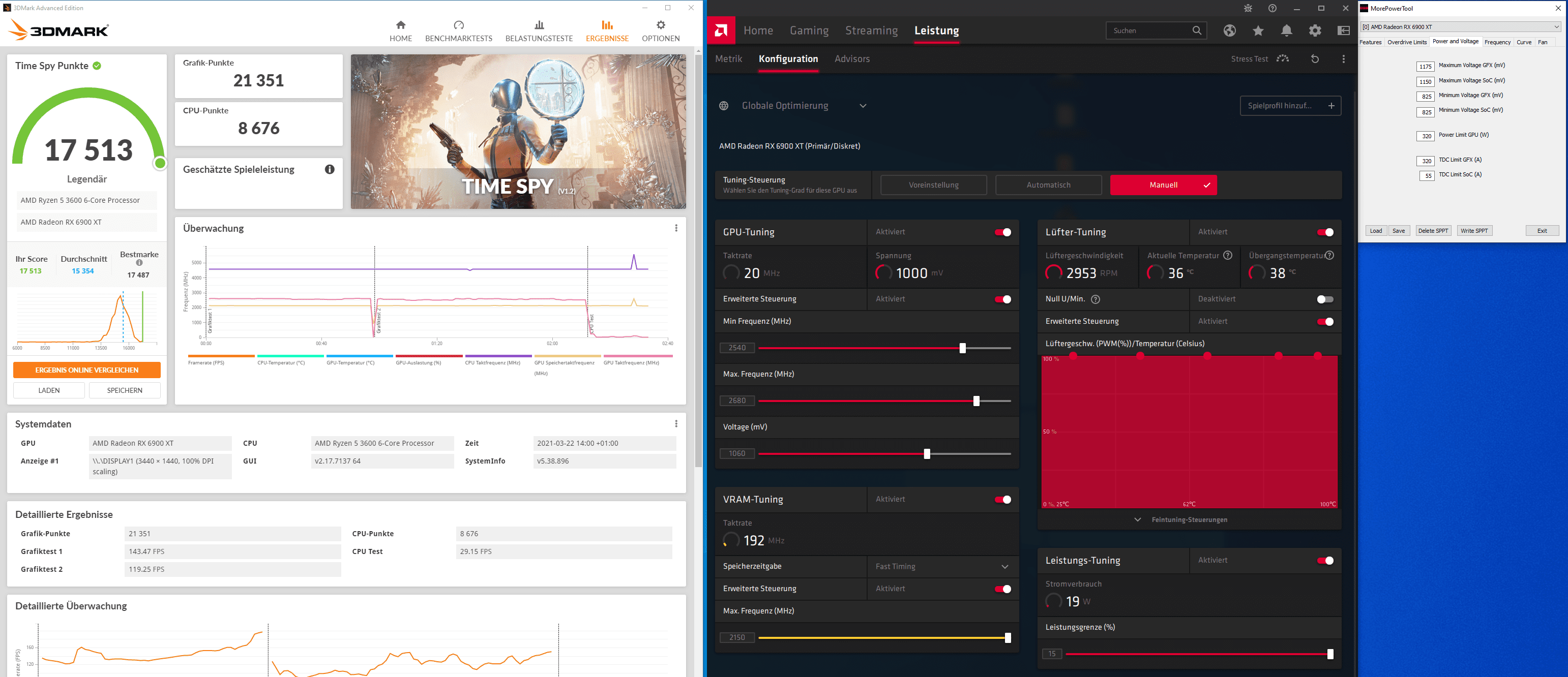 Maximale Punkte kannst du eh nur mit dem MPT rausholen, weil die 6900XT FE ist mit +15% PT bei 295W am Ende... Wenn du über MPT dann 340 oder 350W erlaubst, sind ein paar Punkte mehr drin.