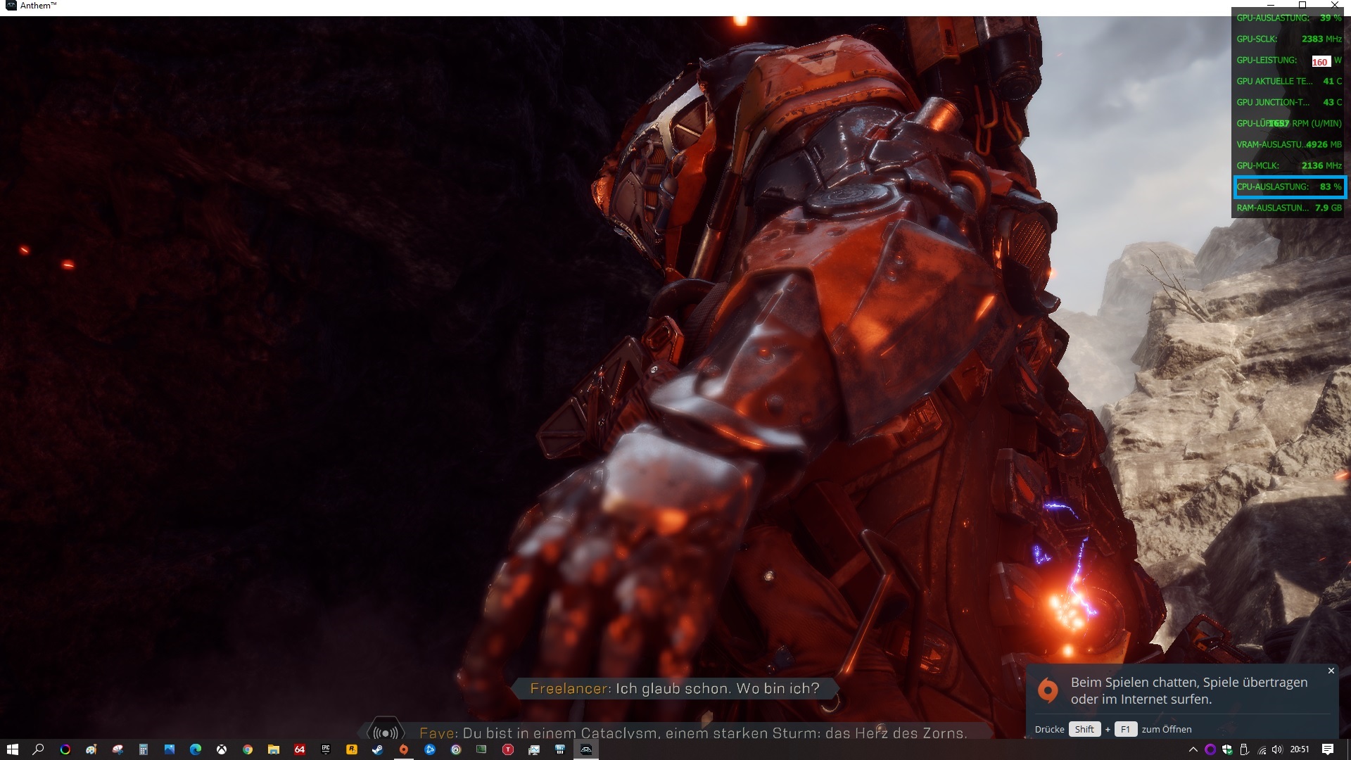 (die Watts sind GPU-Asic;... bei Anthem@4k muss ich nochmal schauen, kam durchs Umschalten ins Fence)
