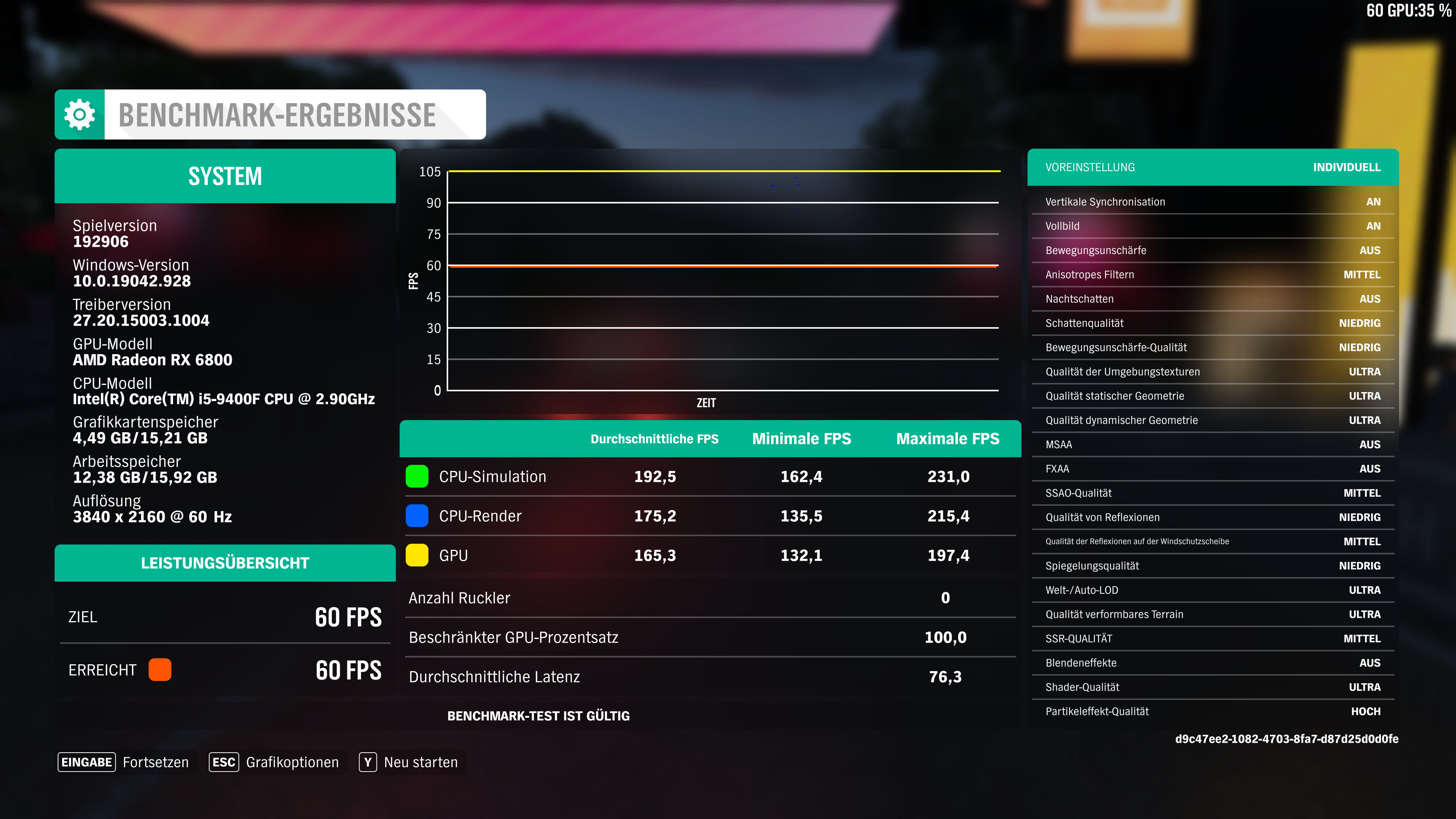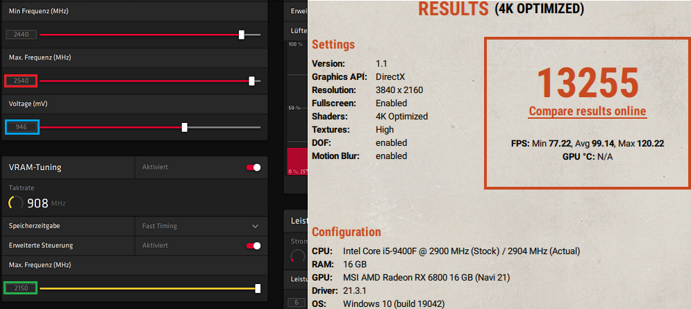 Im Anhang das mittlere Setting, dürfte knapp unter 2500 in Games liegen.