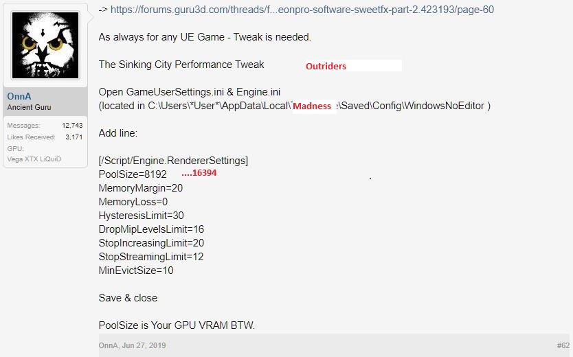 Als Allerletztes könnte man noch in der Game und Engine.ini den Wert für den Vram-Streaming erhöhen.