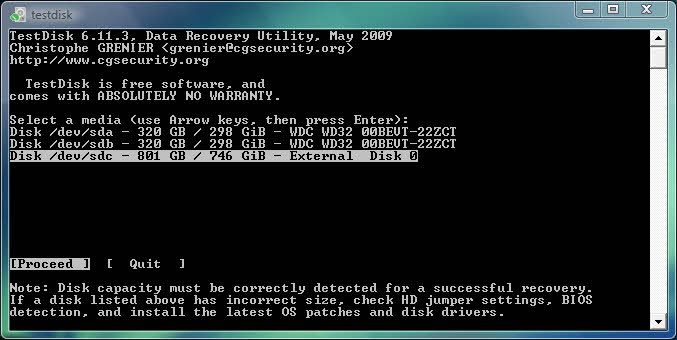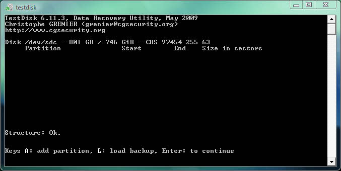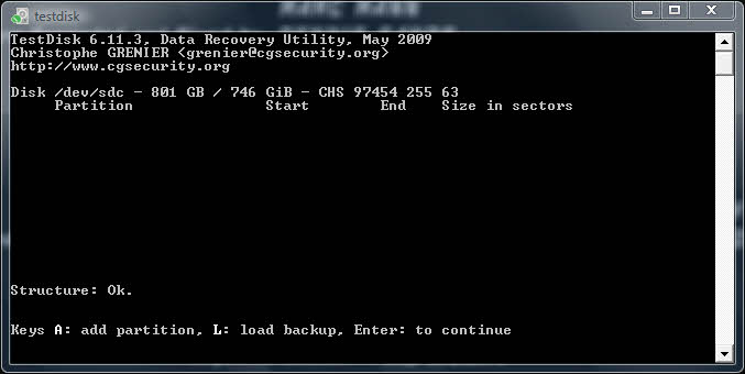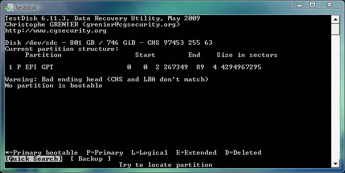 testdisk zeigt mir zwar eine externe partition an, aber nur mit einer größe von ca 800GB.