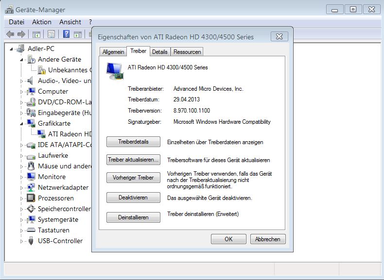Irgendwas muss der PC "umgeschalten" haben, als der neue Monitor dran gekommen ist. Da habe ich dann Softwareproblem vermutet. Also habe ich neuste Version von Catalyst Control Center mit aktuellstem Grafikkartentreiber runter geladen.